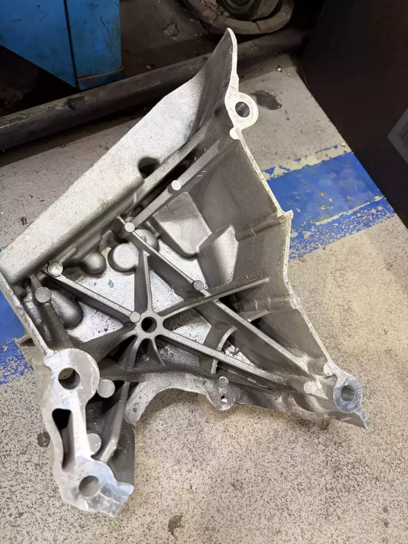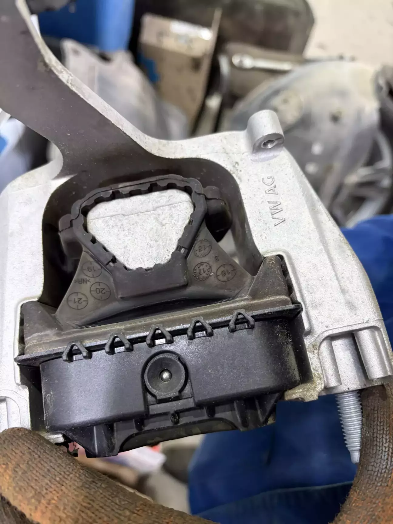 Переходимо до верхньої частини двигуна. Знімаємо кришку, підважуємо двигун та знімаємо гідравлічну подушку.