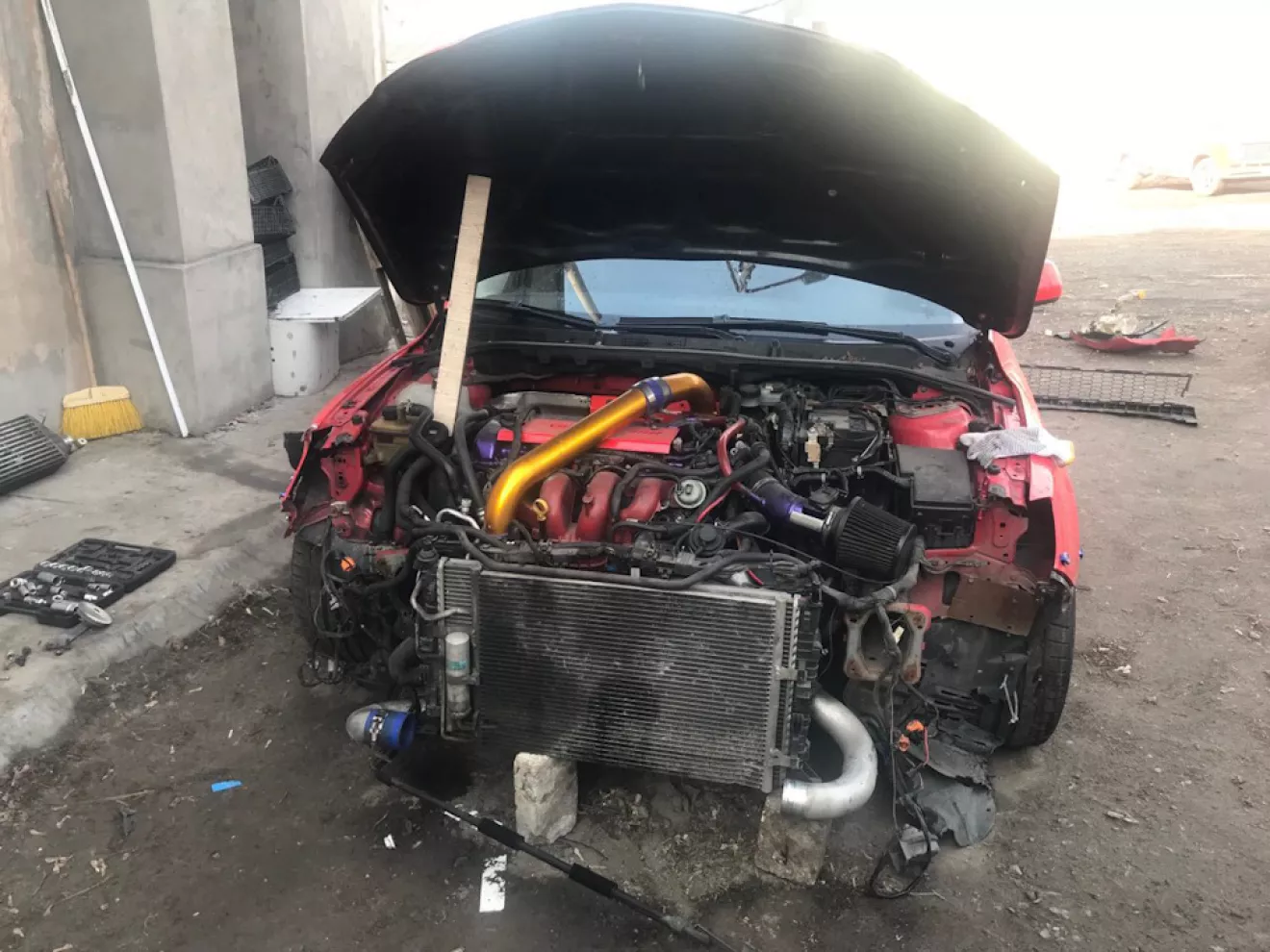 Сегодня поехал на почту забрал запчасти с другом, после этого поехали к машине, думал скину запчасти, завтра приеду поковыряюсь, но не тут то было, руки начали чесаться, остановиться уже было тяжело, разобрали морду, сняли передний усилитель, интеркулер, фары, панель, крыло.Больше никаких повреждений не замечено.Установили новое крыло, завтра накину навесно и на рихтовку, надо будет капот немного рихтануть и потом покраска.