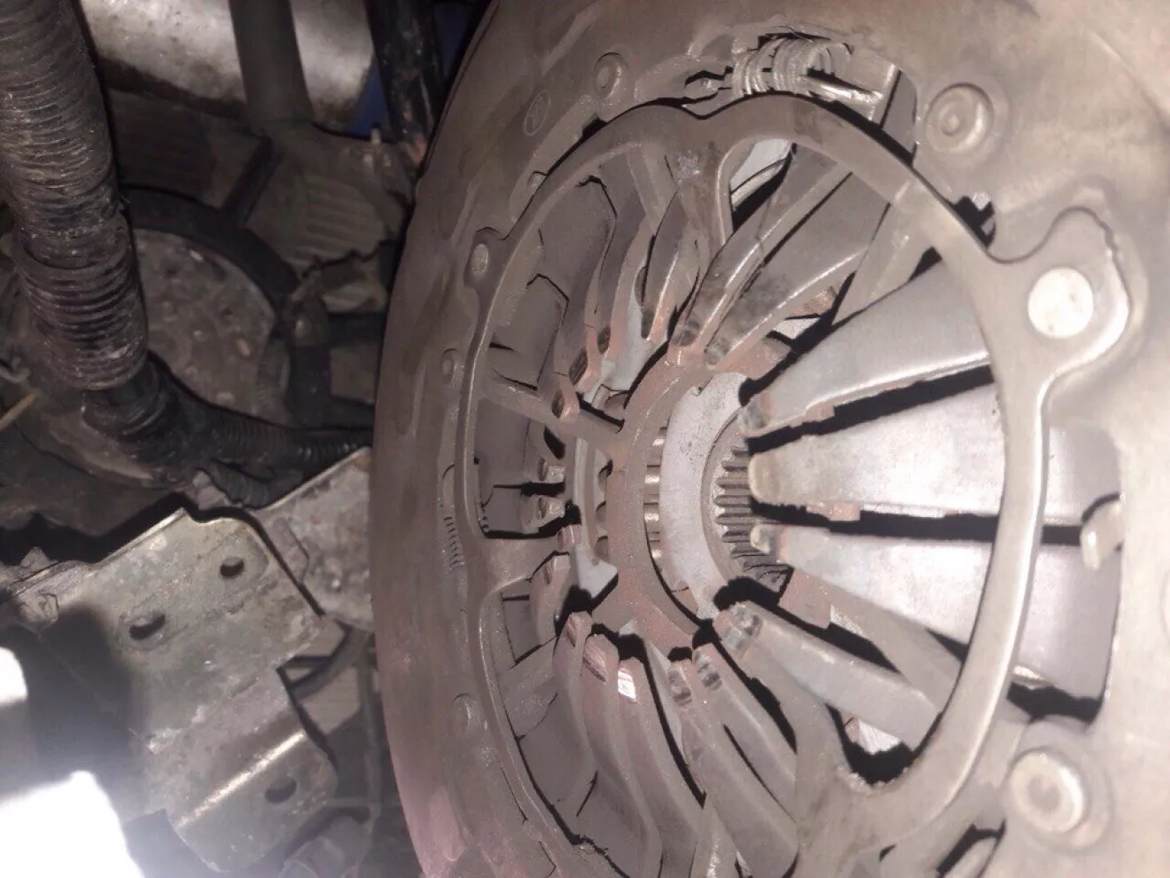 Здравствуйте дорогие читатели))Сегодня посвятил день машине, сняли коробку, выжимной оказался в нормальном состояние, корзина тоже, толщина диска сцепления 9мм…вот на маховике люфт (на видео увидите) Маховик под замену)