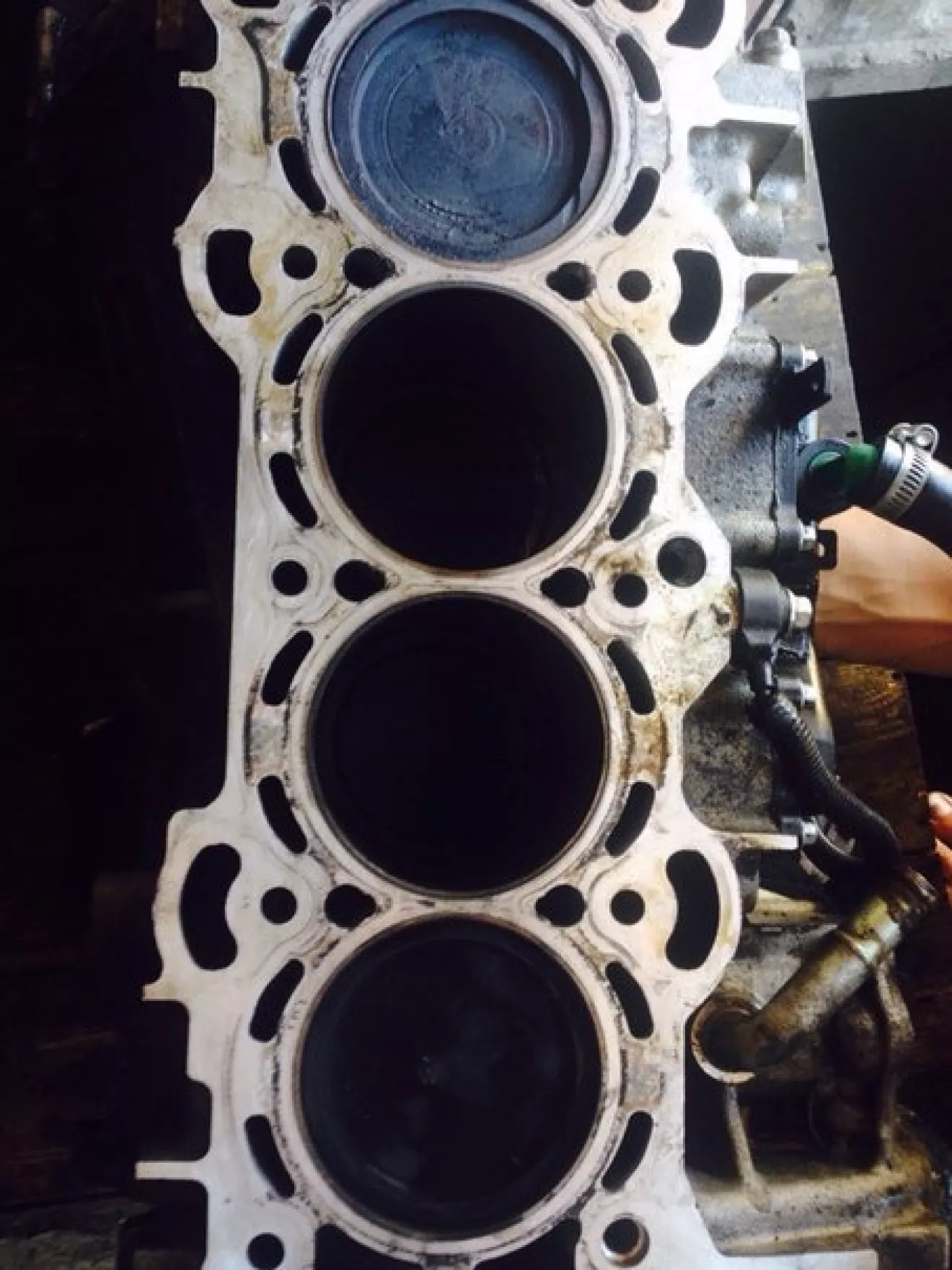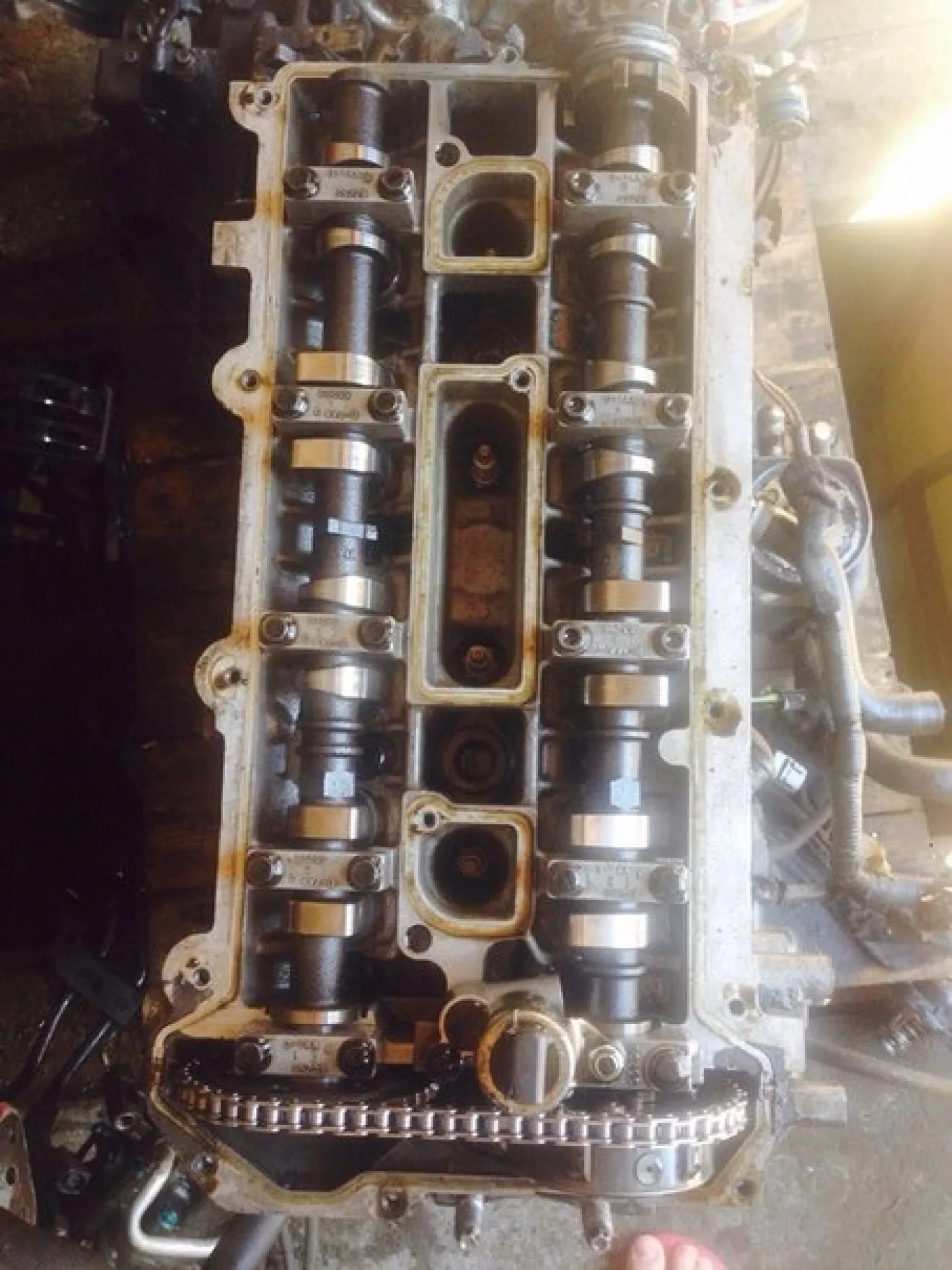 Сегодня мы снимали голову, что вам сказать расстроен я полностью, думал в моторе хоть что то живое осталось а там п*****! Распредвалы, там выработка в местах где они зажимаются бугелями, впускной и выпускной оба под замену, сняли голову я еще больше расстроился во втором цилиндре гильза просела, так еще и лопнула, в третьем цилиндре есть не большая выработка, первый и второй цилиндр в идеале!Колено тоже под замену.
