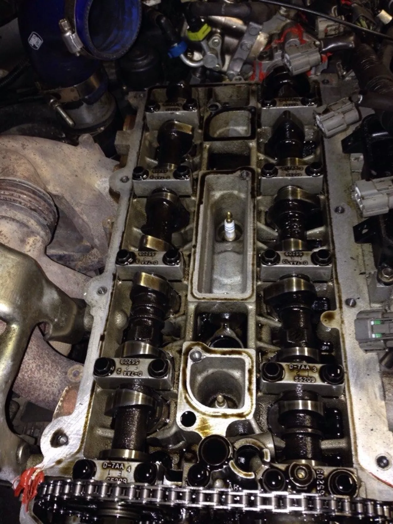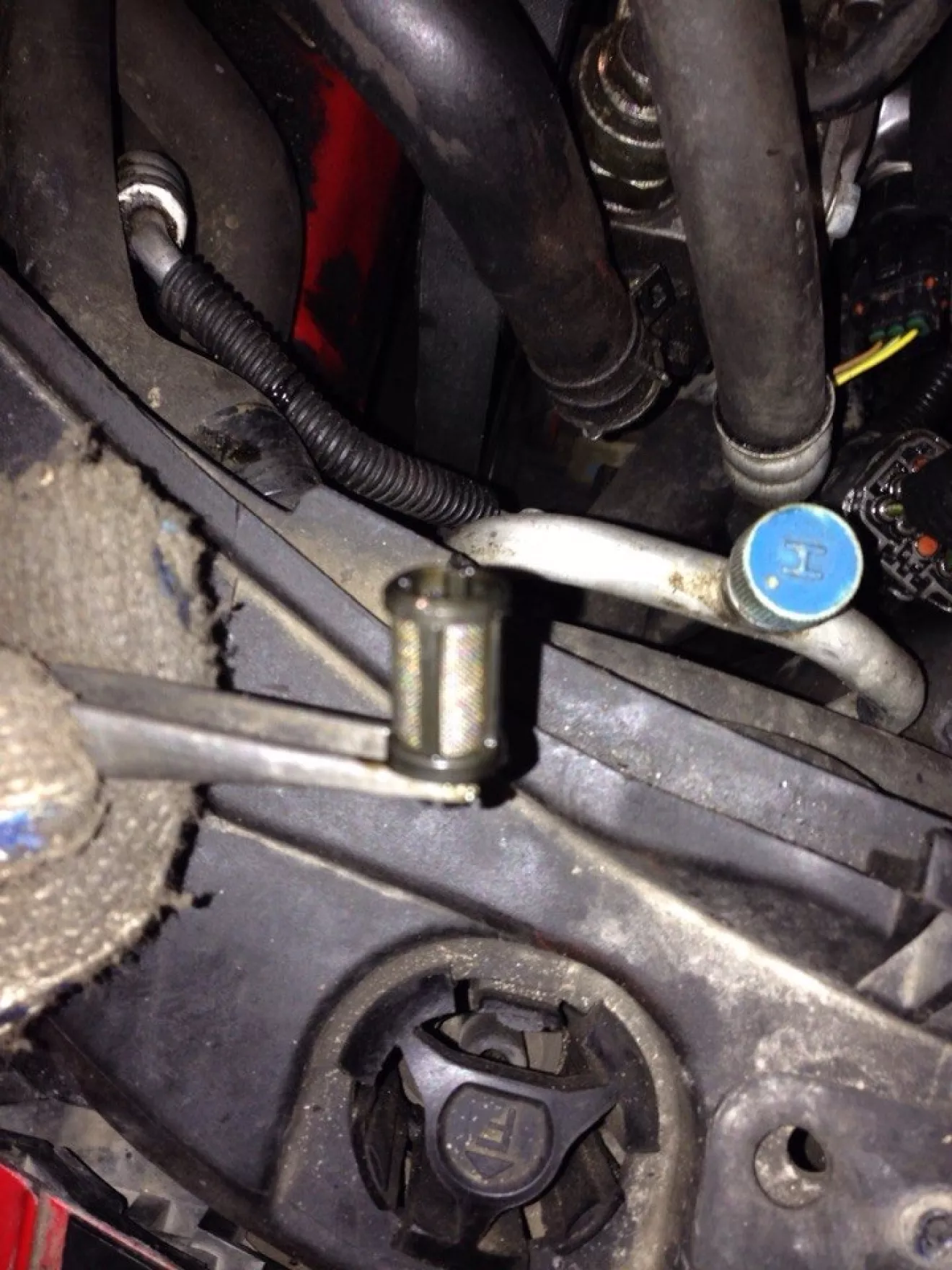 Забрал спойлер с покраски, поехал в гараж менять Запчасти, решил проверить клапан VVT(Подключил его аккуму проверил клапан рабочий сетка не забита, вот провода на него оголенные, надо ехать к электрику