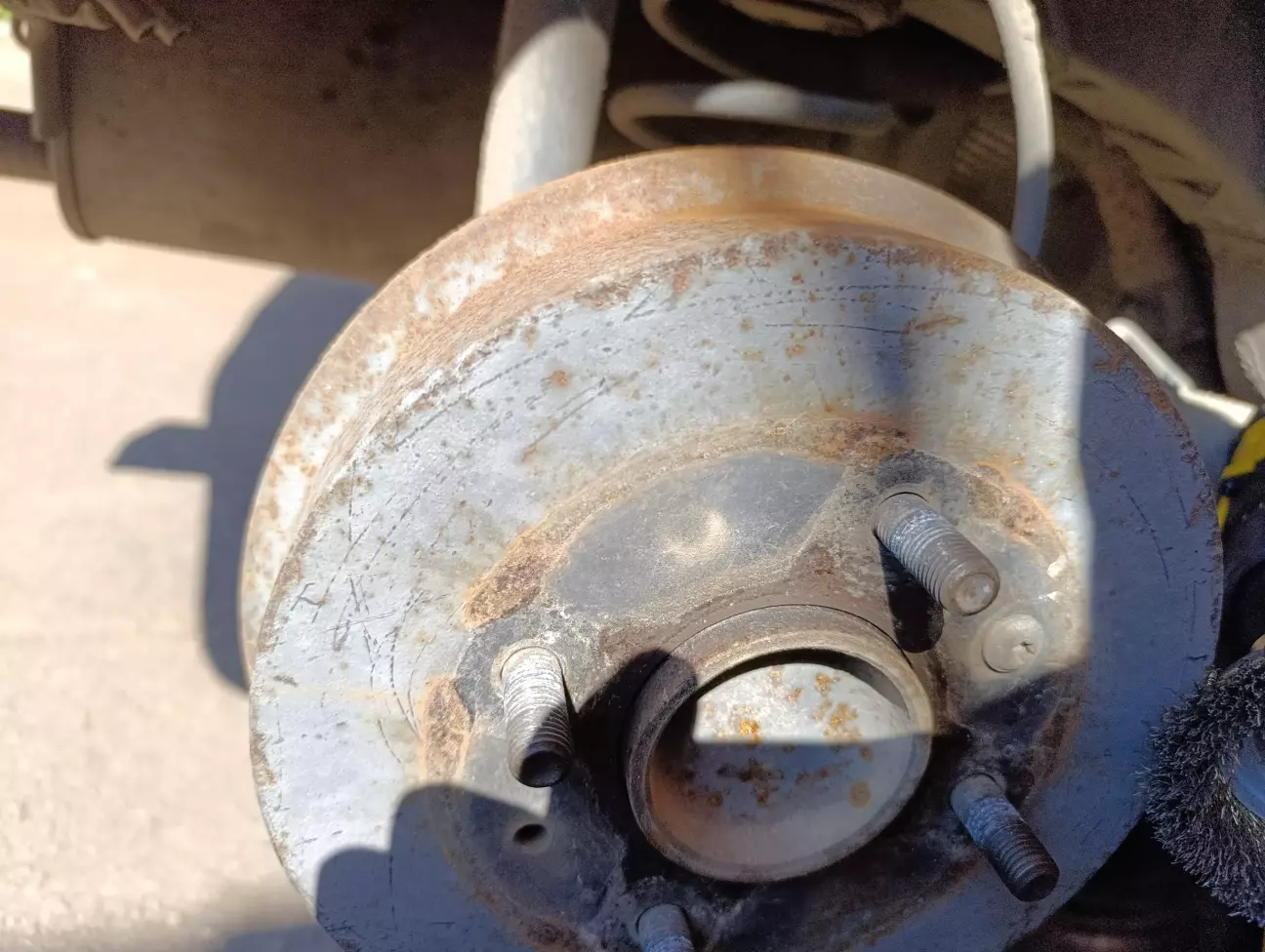 Процедура проста але займає купу часу. Колеса зняти, шуріком та насадками щіточками все зачистити, покрити те все перетворювачем іржі.