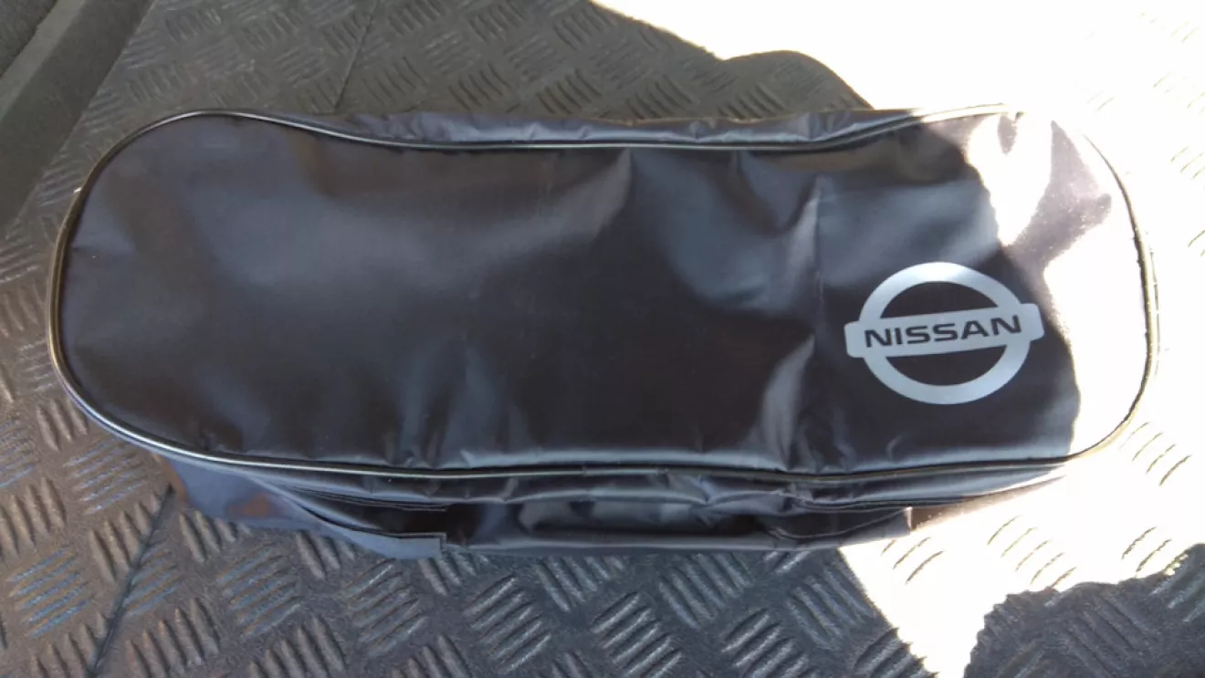 Подвернулась сумка органайзер с логотипом NISSAN. Материал плотненький, имеет два отдела и недорого, цена около 5$