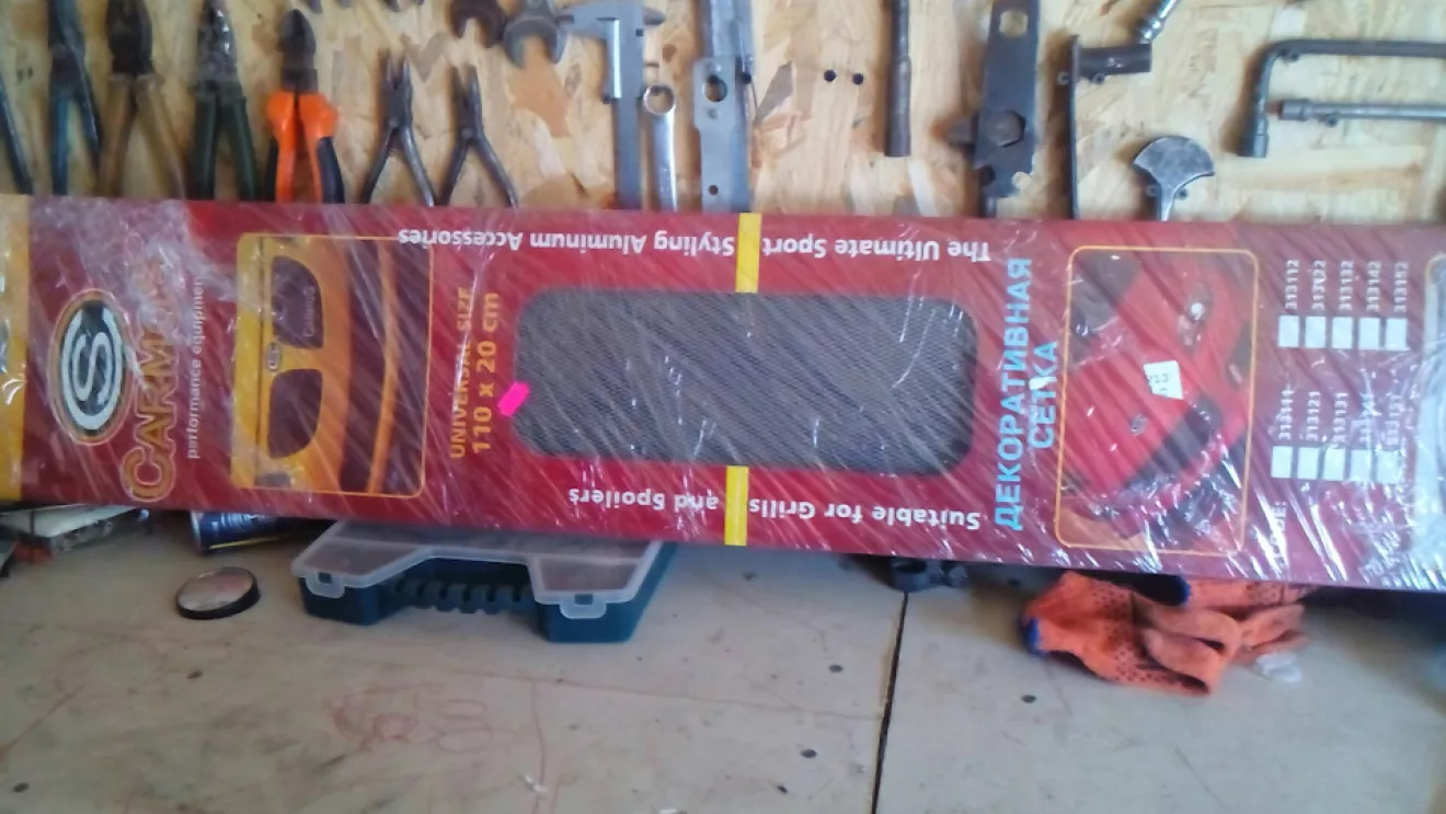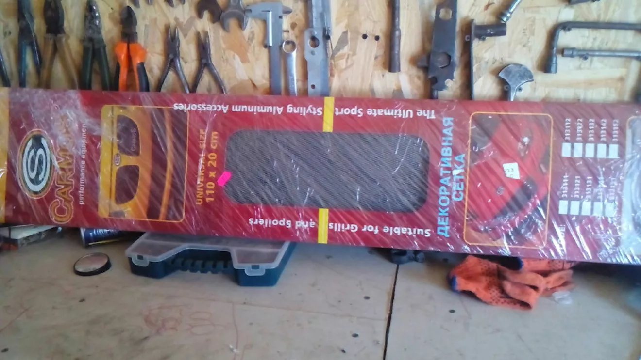 С наступлением тепла, заметил что радиатор весь в мотыльках и всякой всячине. Прикупил сетку универсальную, подогнал по размеру и закрыл "дыры". Вставлял снизу, сняв защиту.