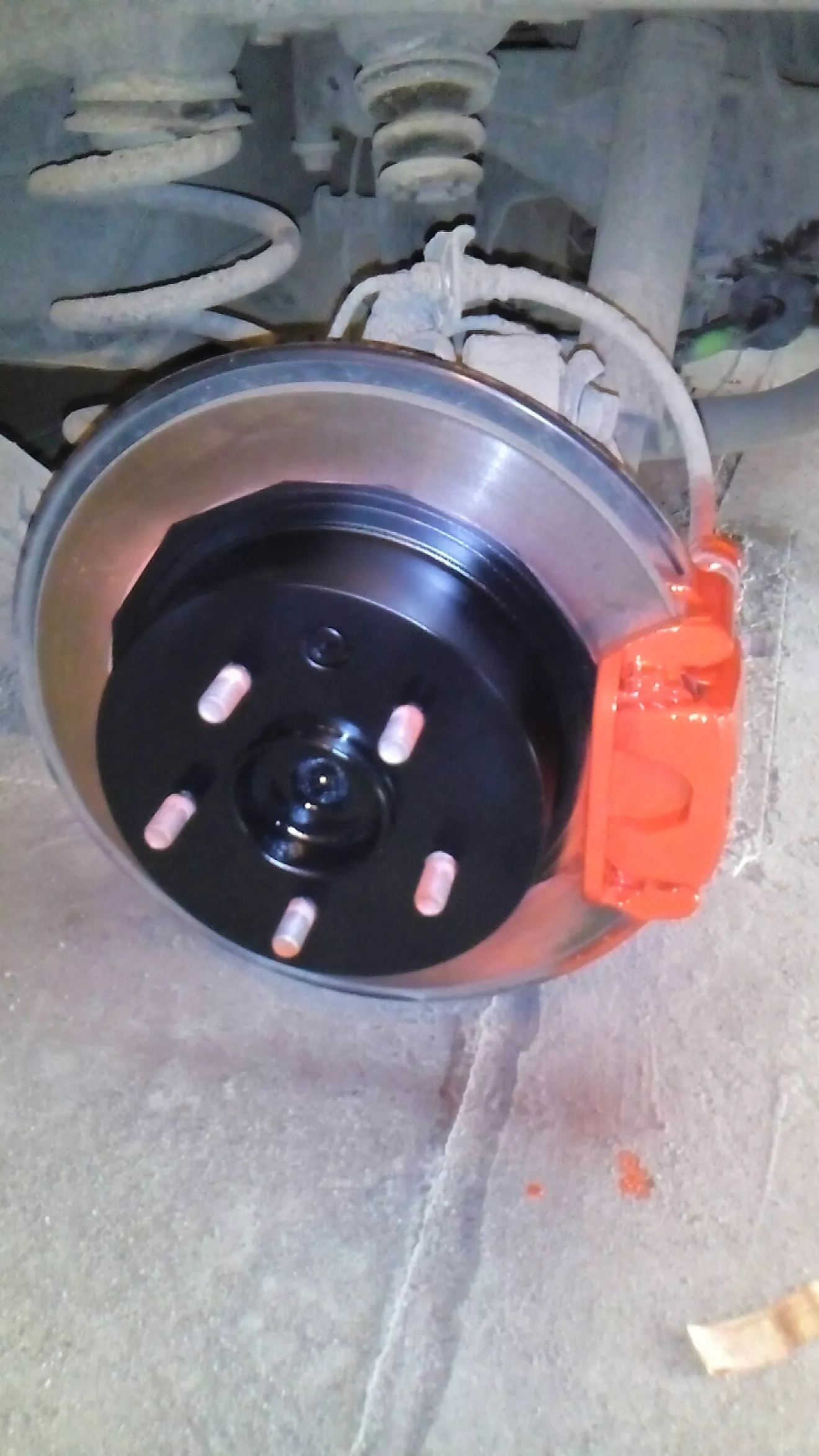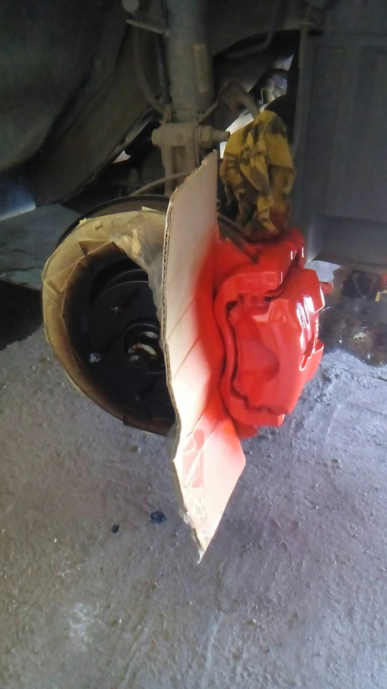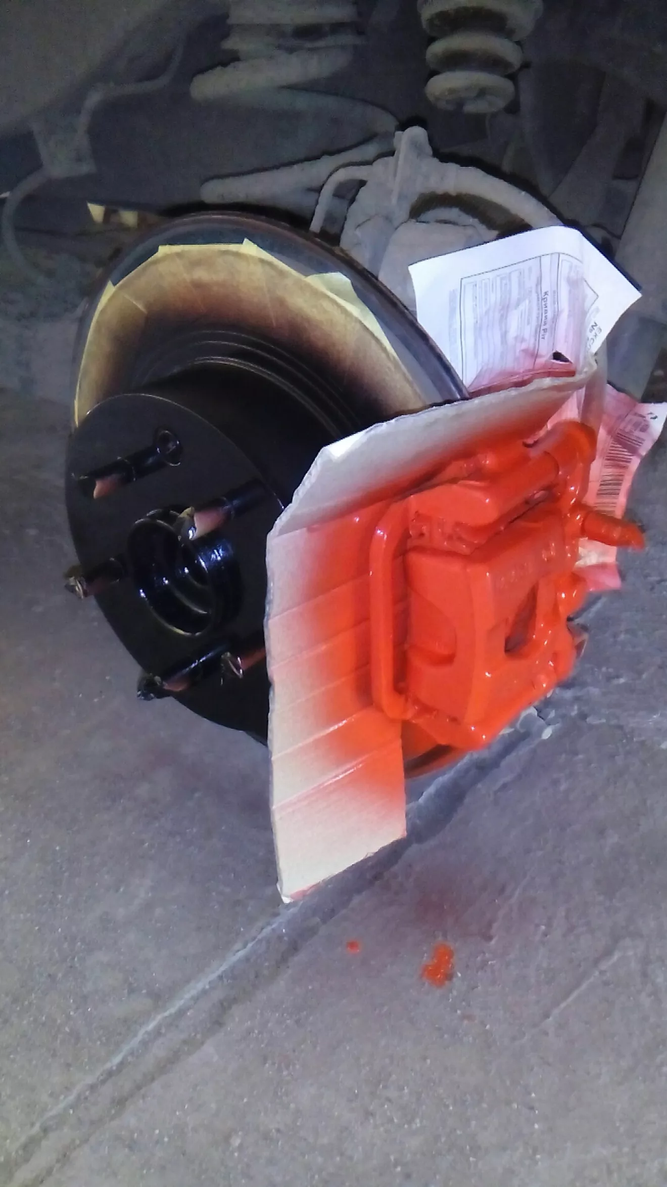 Доброго времени суток. При смене зимней резины на летнюю заметил на барабанах появляется ржавчина. С приходом тепла решил устранить это методом покраски барабанов, но насмотревшись на драйве, решил заодно покрасить и суппорта. Выбор цвета пал на красный. Запасся грунтовкой, черной краской и краской для супортов (всё одной фирмы) приступил к работе. После снятия колёс прошёлся щёткой по металу, затем обезжирил. Дважды прогрунтовал, затем три слоя краски. Фото прилагается. На колёса поставлю завтра, так как оставляю просыхать на ночь. Немного попала краска на диски тормозные, но думаю не критично.