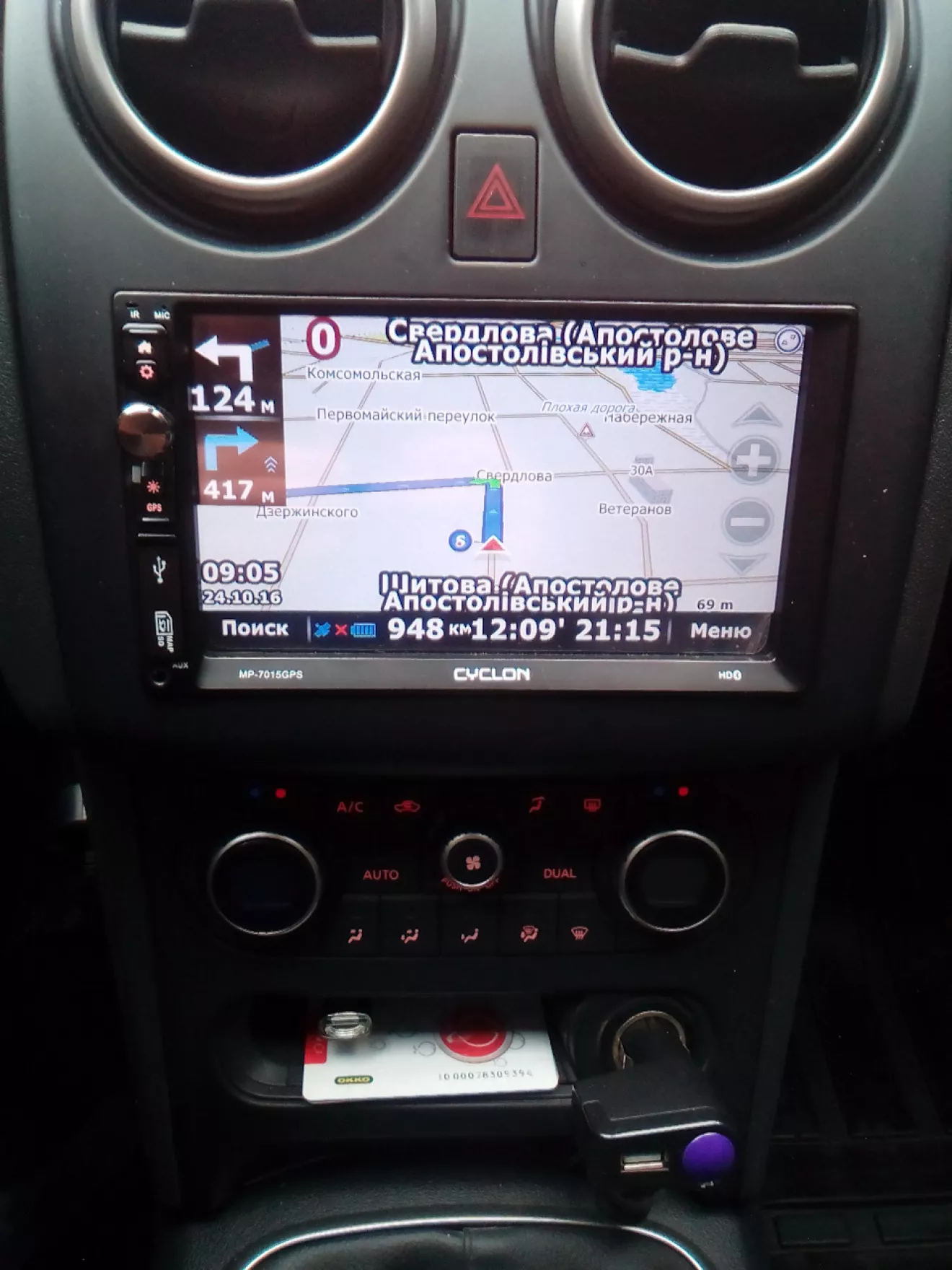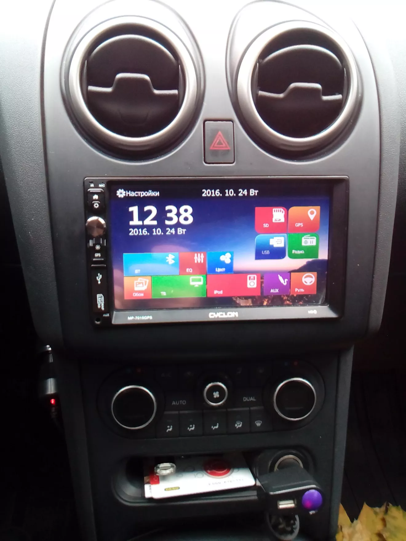 После двух лет использования штатной магнитоллы, решил поставить новую 2х диновую. Причина не в том что штатка не справлялась со своей задачей, просто при езде в ночное время очень мешал навигатор на торпеде (лобовое стекло). Купил недорогую CYCLON, выбрал её потому, что даже штатные кнопки на руле работают без проблем. Один недостаток рвёт музыкальное сопровождение при работе навигатора.
