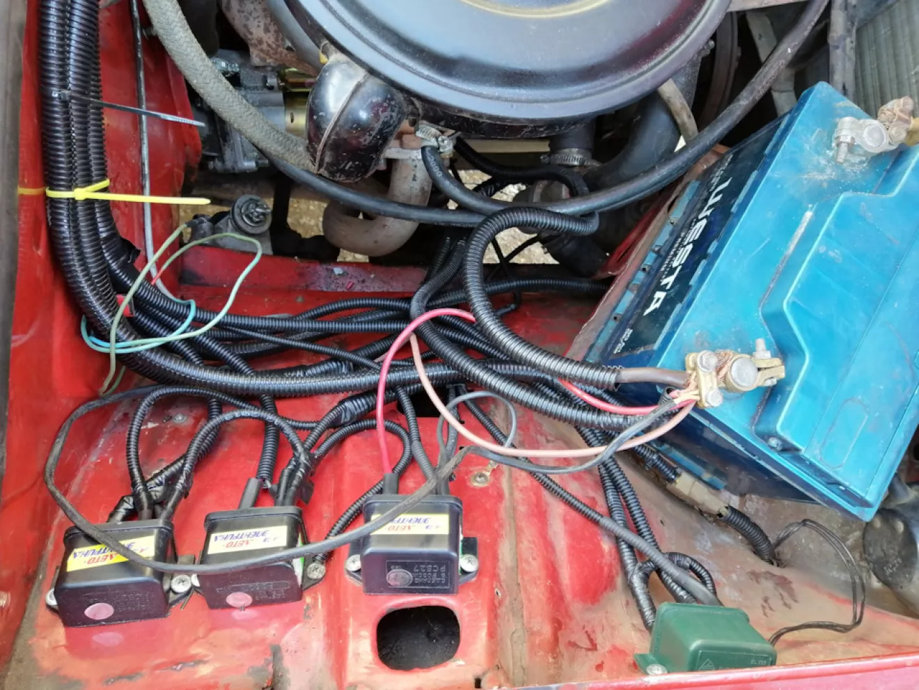 Наконец-то завершил все работы под капотом, все в гофре, но все равно колхозно смотрится
