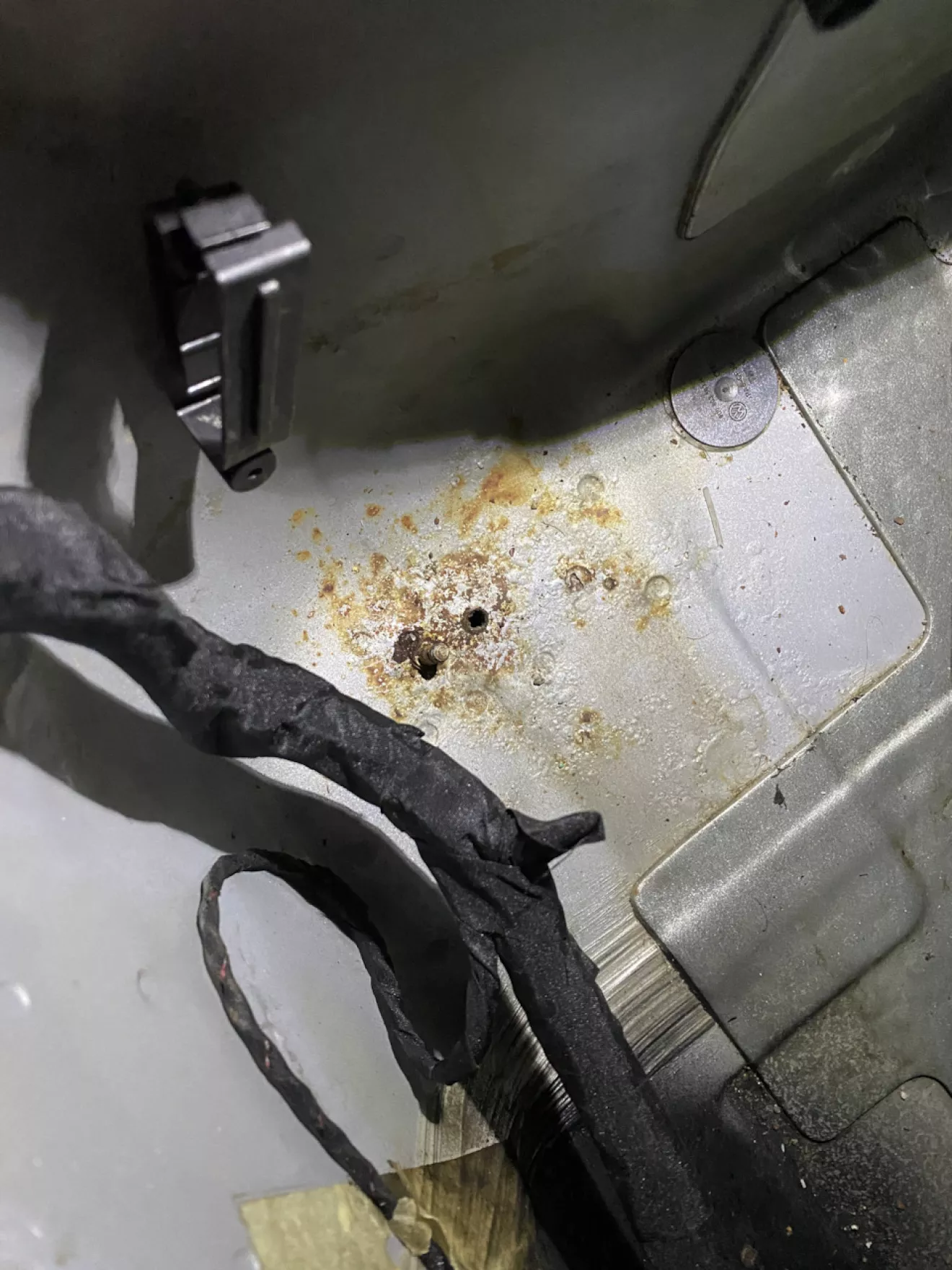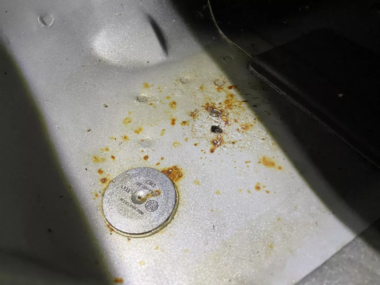 Как писал в предыдущем бортжурнале, какой-то чёрт просверлил днище сзади в ногах пассажира и начало ржаветь.