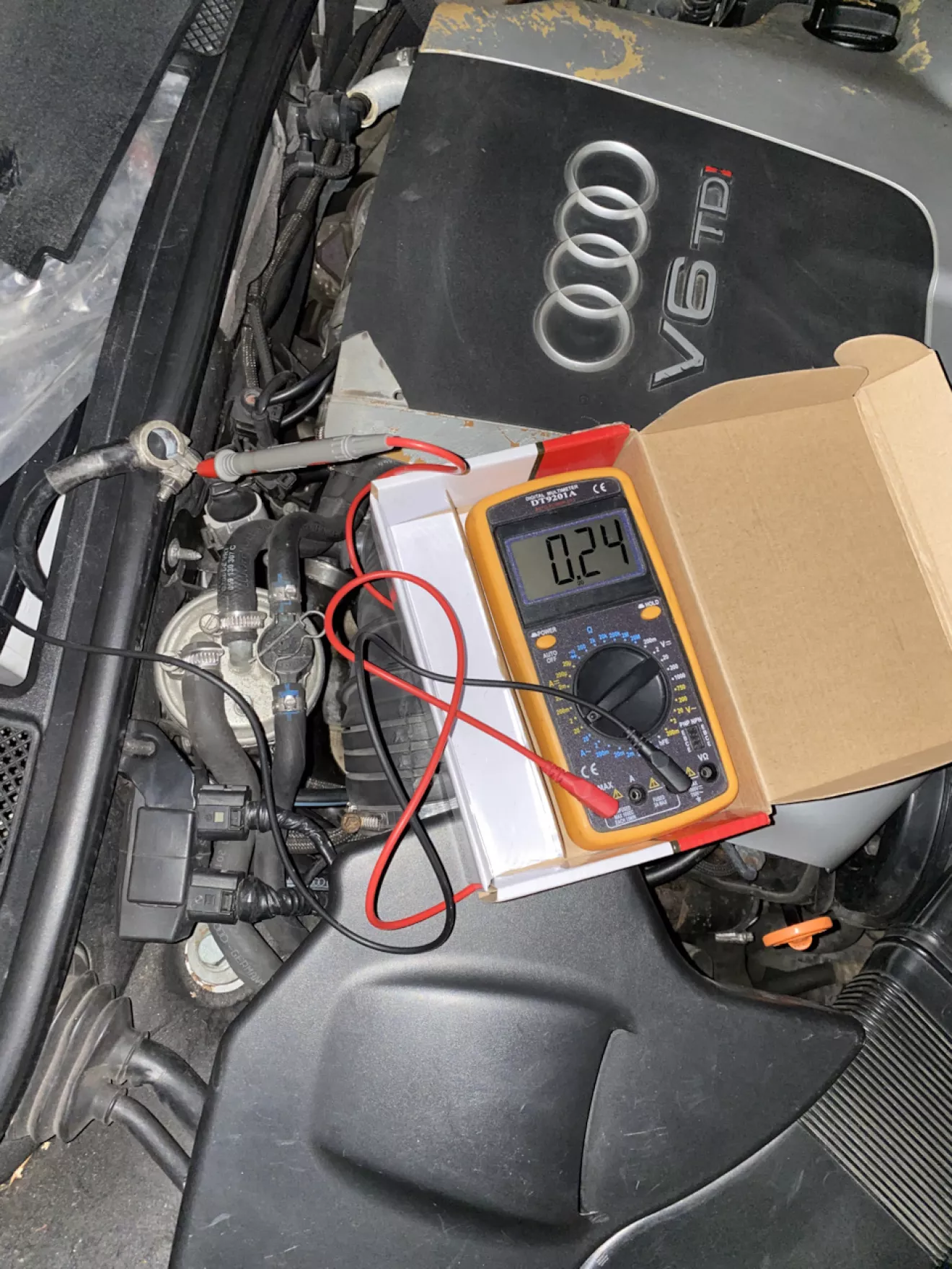 Это я к тому, что если вы сразу скинули клемму и подключили обратно питание но в разрыв через мультиметр, то может сработать пробуждение магнитолы от подачи питания, заработать кулер и показания могут быть сильно завышены около минуты или меньше, а после уходят в норму 🙂