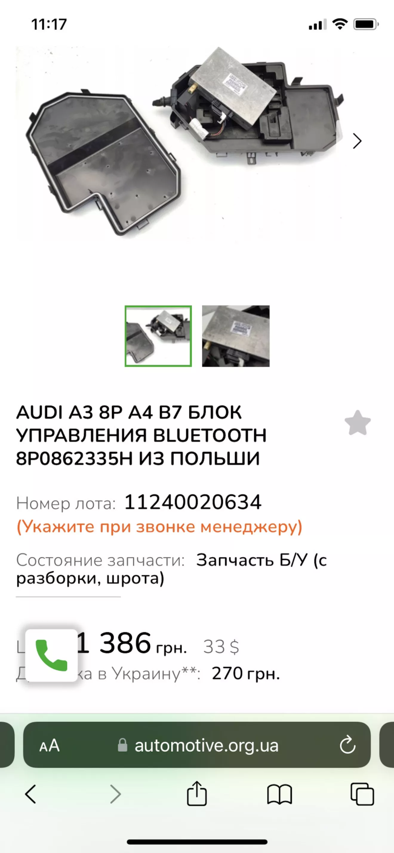 Уже советовался с Вами в предыдущих бортжурналах насчёт телефона и было решено не заморачиваться с поиском украденной трубки из подлокотника, а купить оригинальный блок управления Bluetooth от Audi A3 / A4.