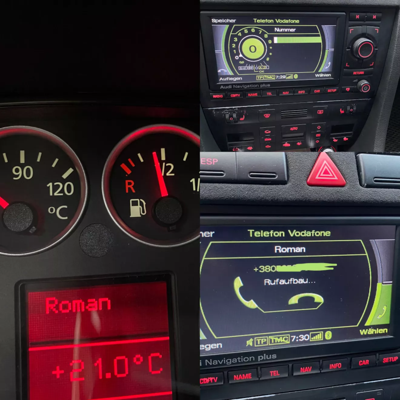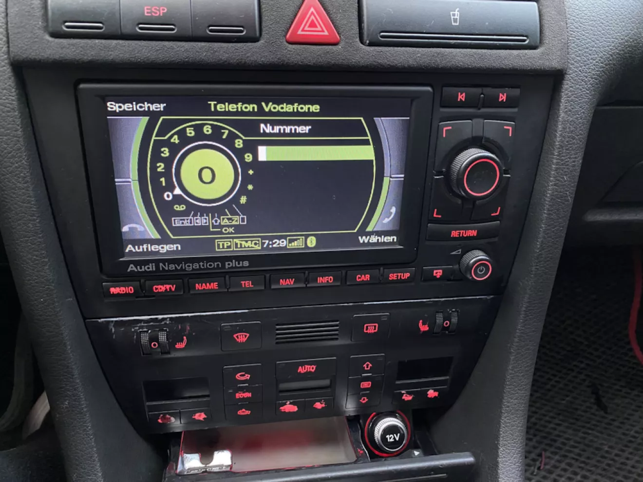 Телематик, это огромный Нокиевский блок. Устанавливается с правой стороны под ковёр за моторчиком печки. Возле ручника для телефона уже не плоский разъём, а такой как интернетный у роутеров, в ПК и так далее. Ну вы поняли. От телефона такой же разъём. Смотрел много записей и такие блоки часто ставили в дорестайлинг. Жаль. К этому блоку очень красивая Нокиевская трубка с колечками Ауди ☹️ В рестайлинг пошли страшненькие Нокиа и Сименс. Возможно, красивую Нокиа ставили и в рестайлинг 🤷🏻♂️ По крайней мере видел уже дооснащение, а не с завода.