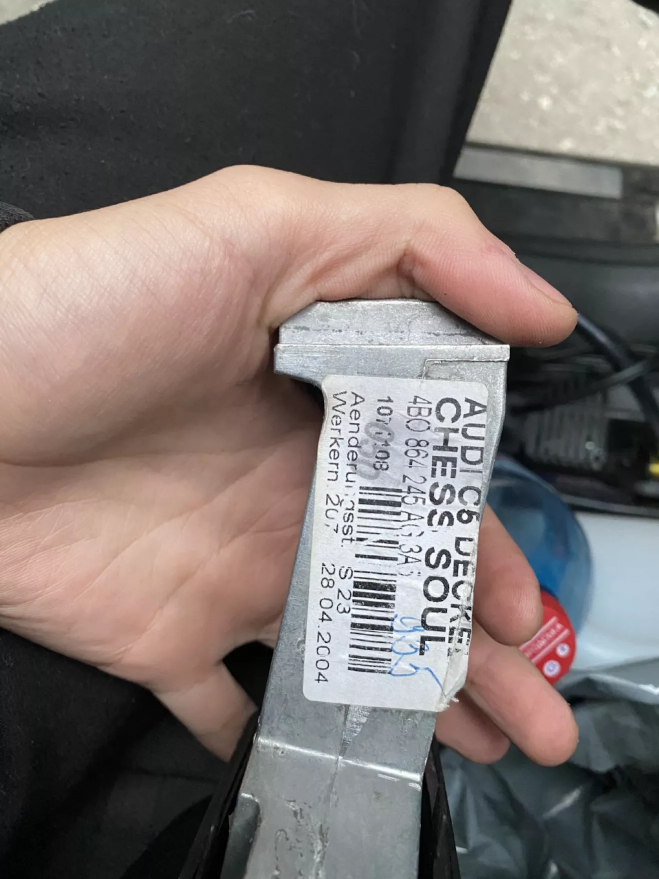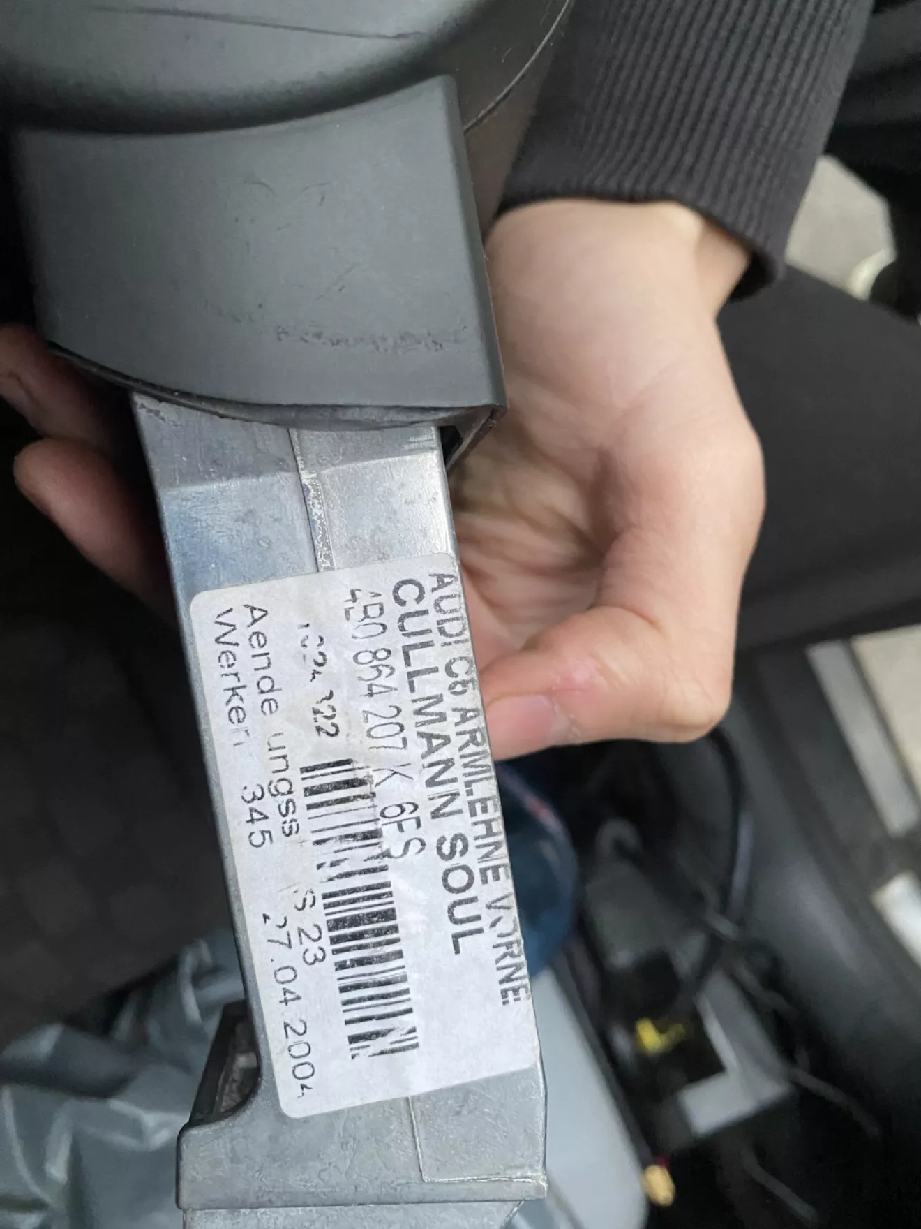 Коричневый блок телефона под консолью, я когда то снял вместе с сидюшником, а недавно у меня проснулась манечка вернуть всё обратно, а не складировать не пойми зачем дома 🤷🏻♂️ В тот момент сфоткал номер запчасти на подлокотнике. Наклейка находится на алюминиевой ножке. Точнее их 2-е. По первому номеру пробивается крышка подлокотника, а по второму сам подлокотник. На наклейке написан номер запчасти и " CULLMANN ".