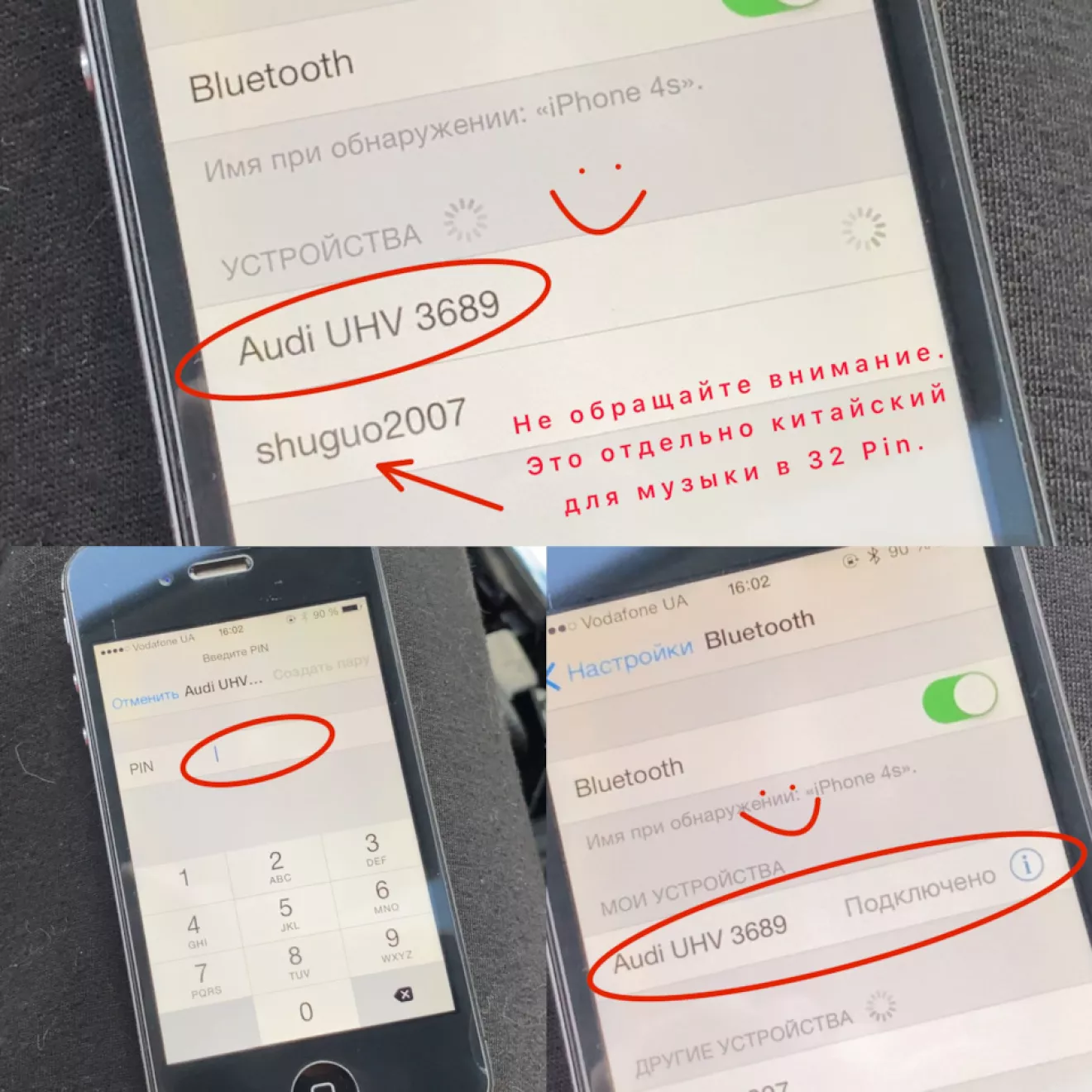 Ввели и нажали Ок. Теперь заходим в блютуз в телефоне и увидите Audi UHV ( и 4 цифры ).