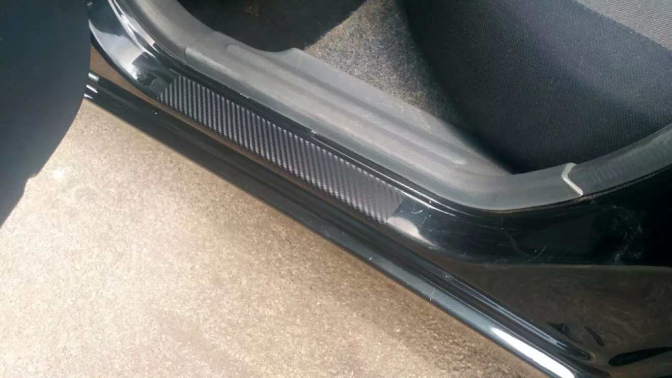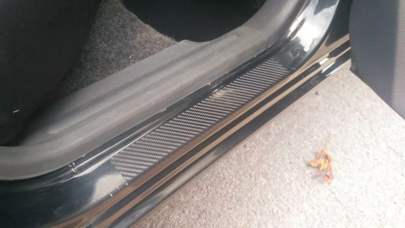 Всем привет. Купил защитную пленку на пороги и в обед на работе решил их поклеить. Результатом очень доволен, на черной машине смотрится отлично.