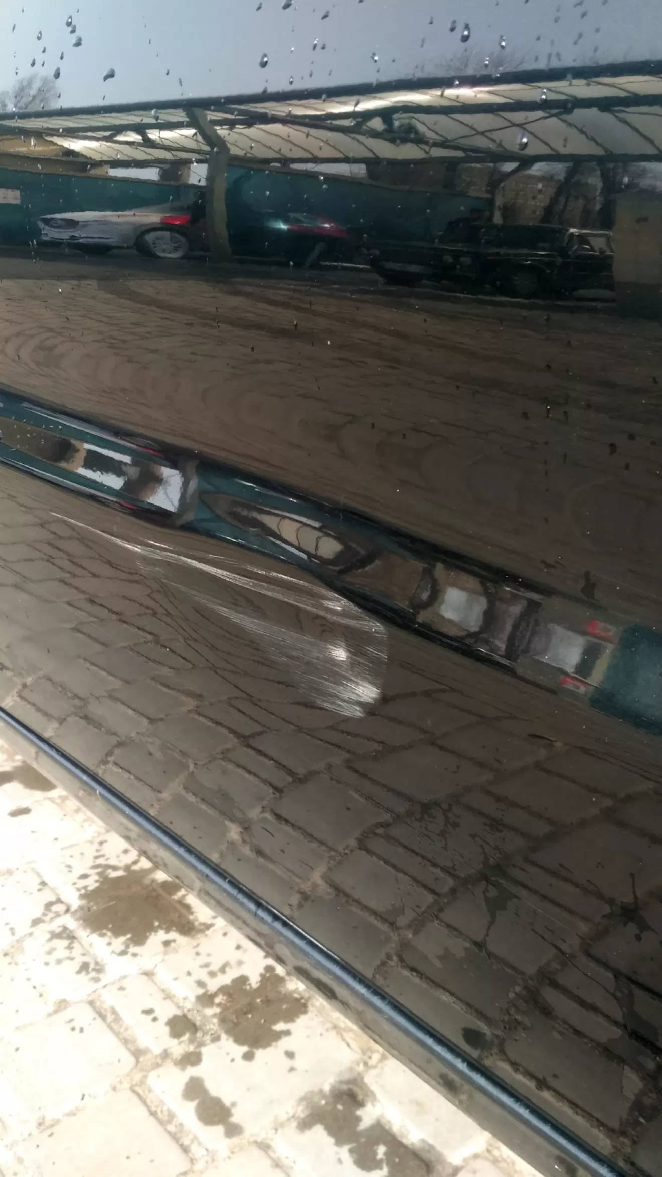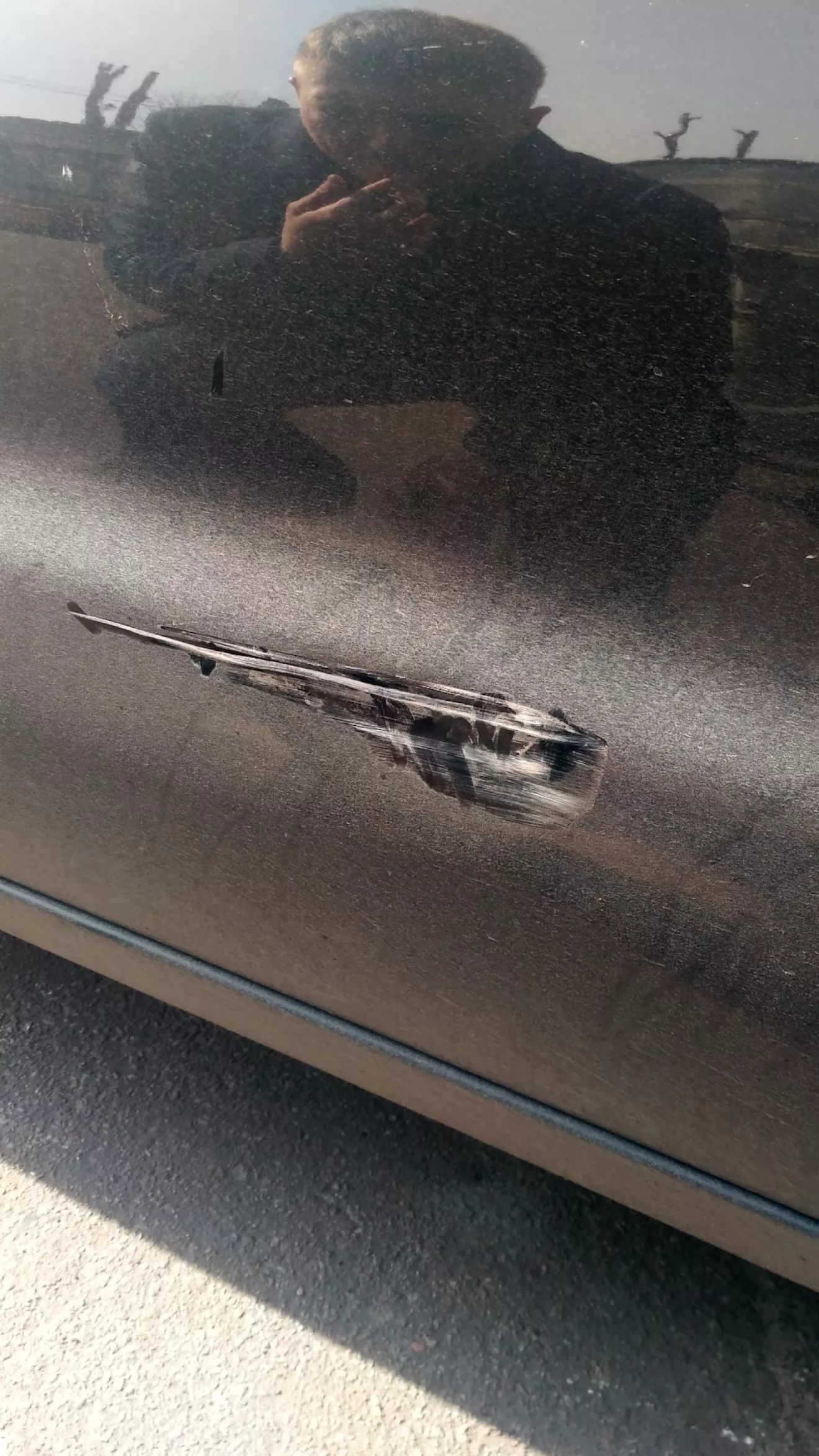 Результатом доволен, но вмятину видно хорошо.Заодно убрал еще и старую царапину.