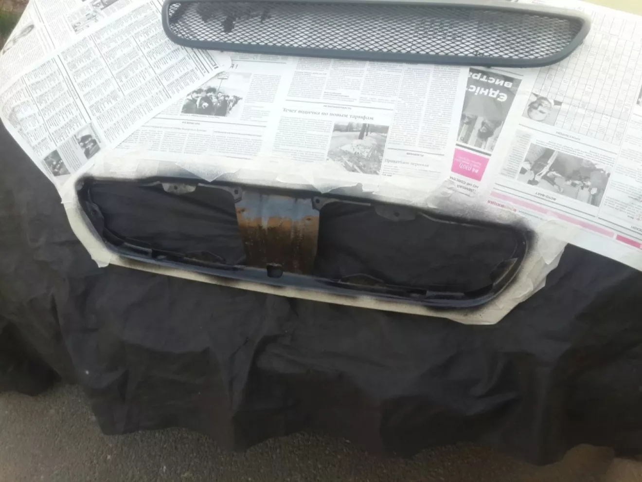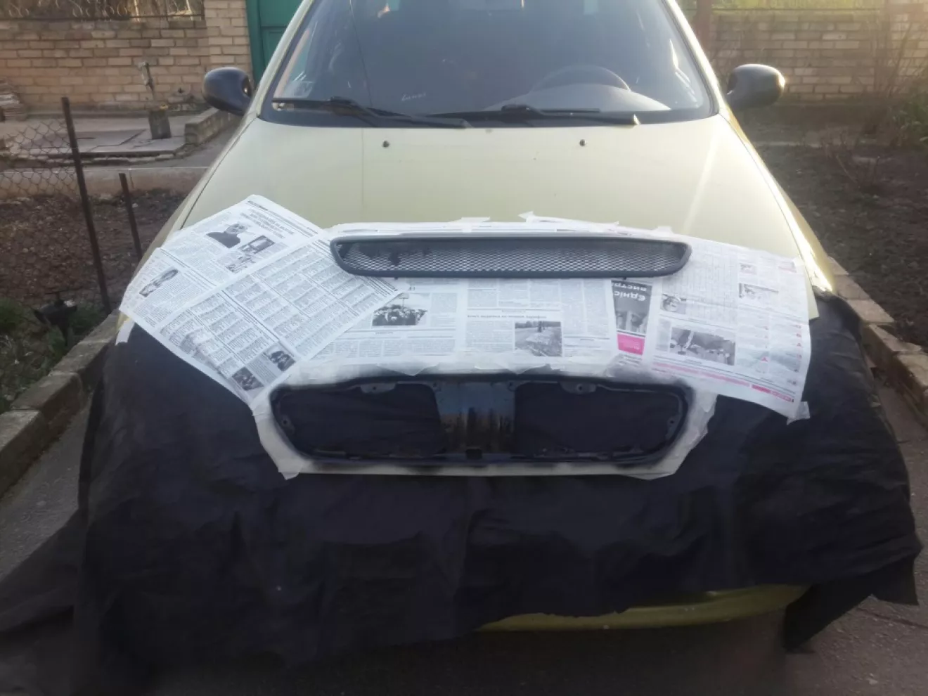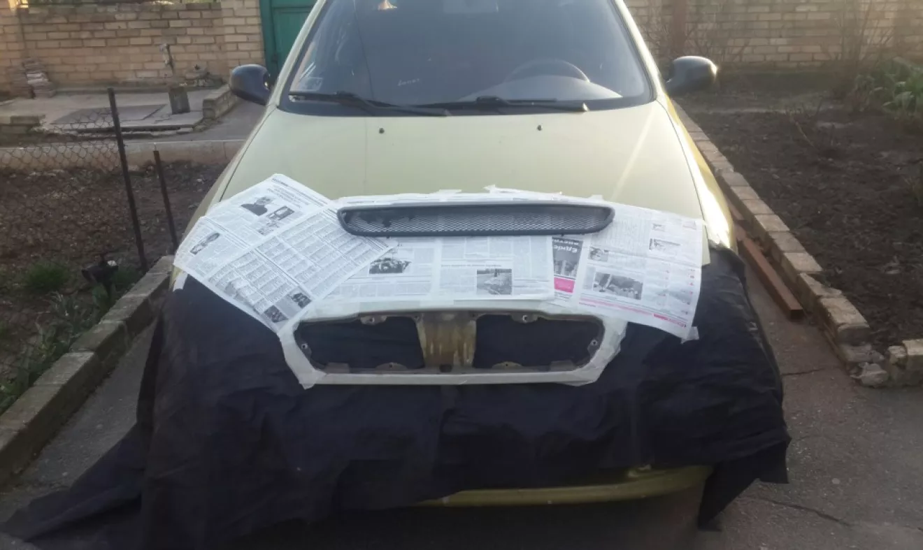 Решетку купил еще в начале зимы, так как нужна была покраска при устаноке, оттягивал установку до тепла, сегодня как раз было тепло и свободное врямя, спустя час работы все таки поставил, но есть одно но, долго не мог разобраться с крепежами, на что психанул и временно прикрепил на хамуты, держит отлично . Строго не судите, а так мне нравится ))))