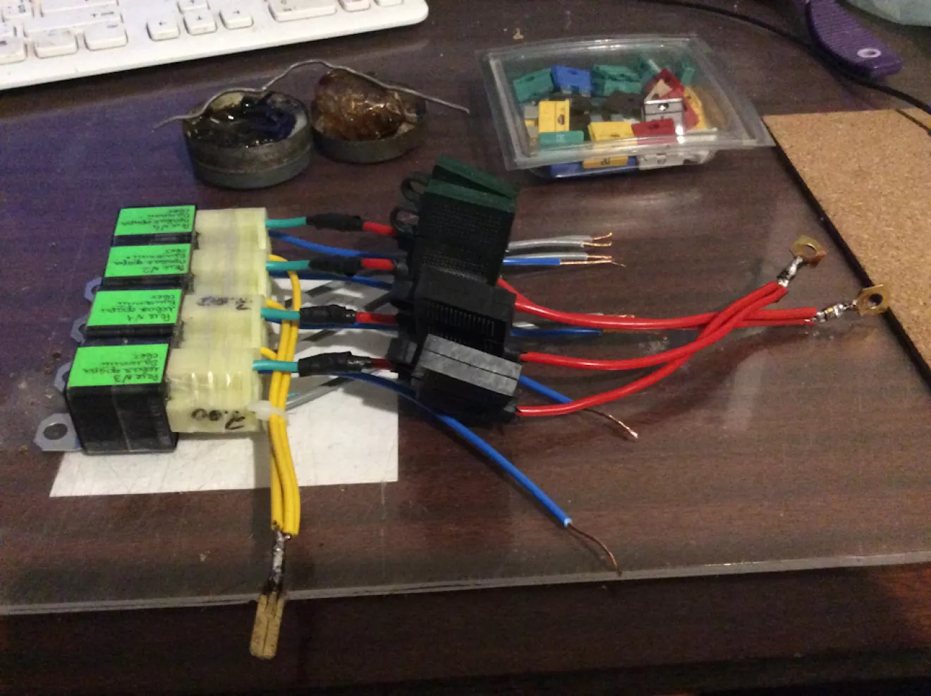 Столкнулся я со слабым светом штатных фар. Особенно ближний свет. Читал форумы, статьи на разных сайтах. Проблема слабого штатного света есть у всех Т4 не зависимо от года выпуска. Некоторые владельцы к этому относятся не так критично, однако я пожелал улучшений. Первым делом заменил лампы в фарах. Стояли лампы Филипс. Самые обычные. Поставил Осрам +110. Светить стали лучше, однако все равно маловато. В куче узлов автомобиля на пути тока к фаре происходят большие потери. От батареи ток идет на блок предохранителей и реле. За тем оттуда идет к выключателю света. Дальше снова на блок. Затем к подрулевому и снова на блок. От блока уже расходится на фары. Это все контакты, контакты и еще раз контакты, которые имеют свойство окисляться, ослабляться и прочие -ляться. Потери в 1,5-2 вольта. В рамках доделки поставил 4 штуки реле. Питание реле приходит через те все контакты. Но для реле это не критично. Минус прямой от батареи. Фары питаются с минимальной длиной проводов от батареи через предохранитель и контакты реле.