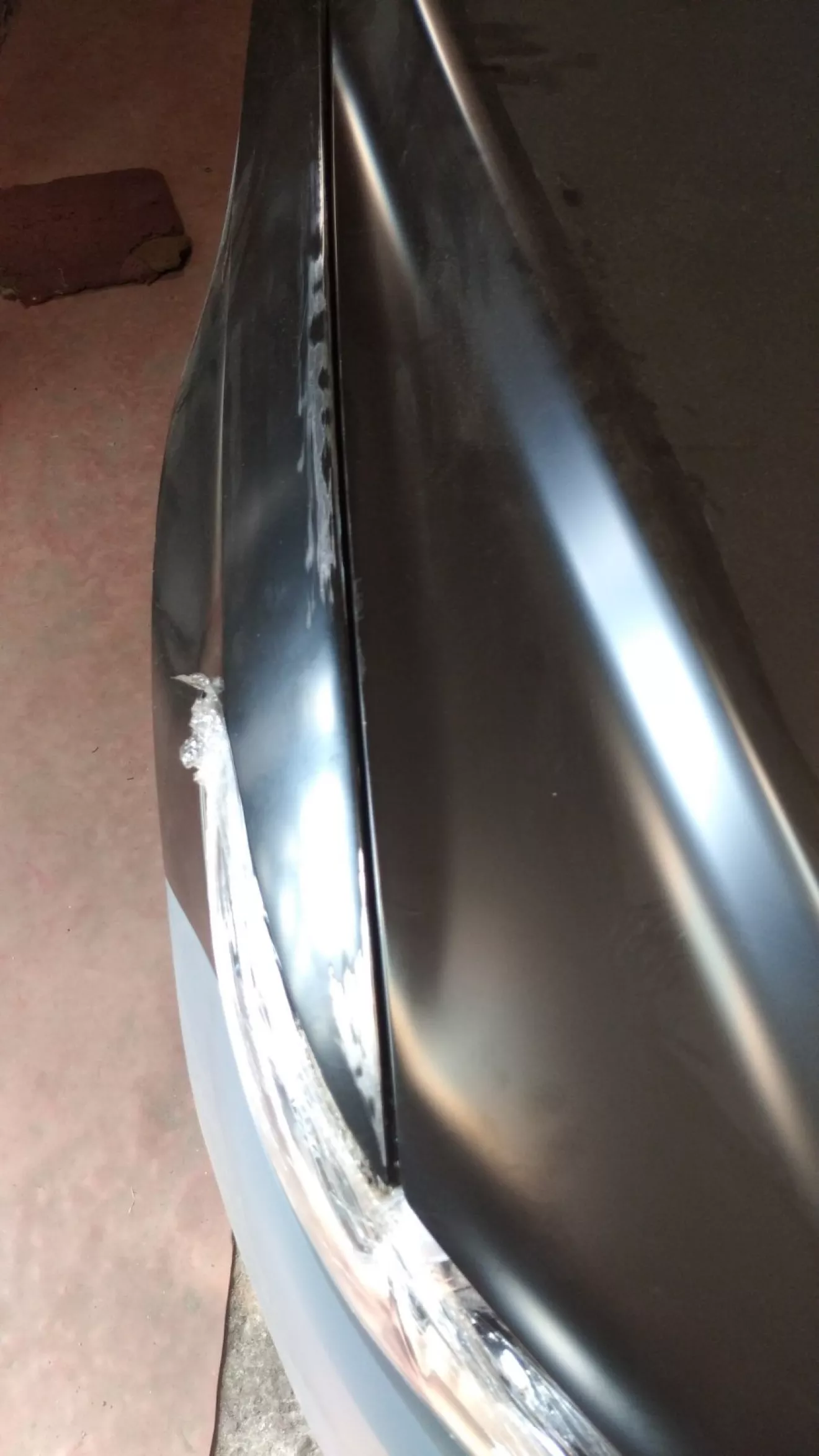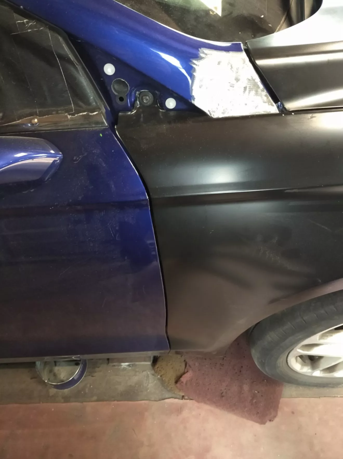 Докупив петлі та підсилювач за 150$. При спробі встановити новий підсилювач прийшло розуміння, що лонжерони трішки не на місці, оскільки фланці «ніг» підсилювача не всією площиною ставали на фланці лонжеронів. Поки чекав — готувався, креслення були, і авто таки поїхало на інше СТО до рихтувальника разом із ними. Авто взяли на стапель і підтягнули все на місце (заломів та складок ніде не було), хоча можна було, напевно, «наколгоспити», але ж для себе роблю, хоч і на Тайвані 😉… Пощастило мені, що встиг розмитнити і всі запчастини скупити до цієї пандемії… Ось показую результат…