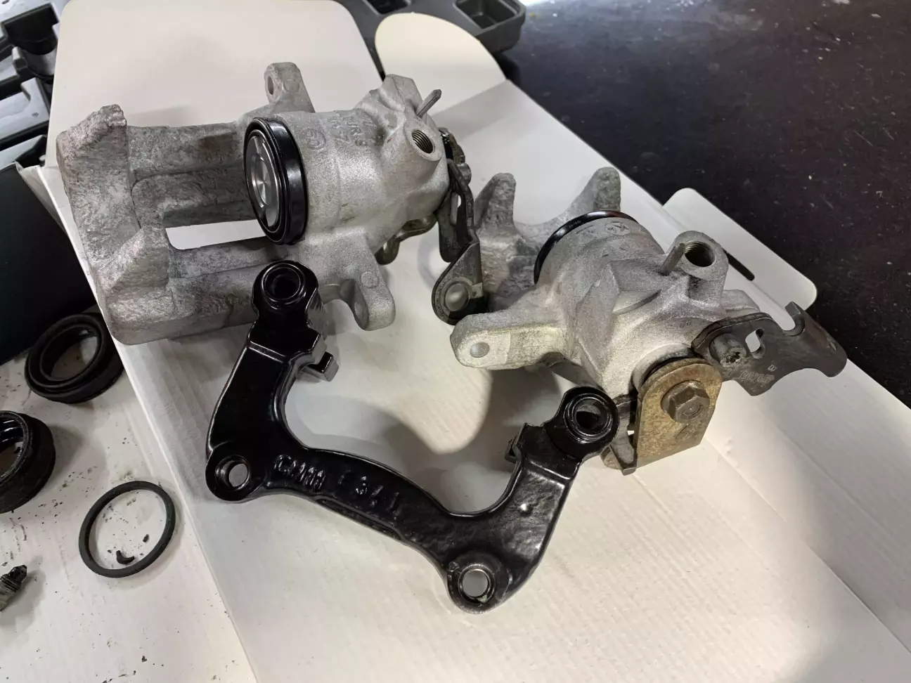 Під час заміни комплекту колес зимового на літній вже прям сильно кинулось в очі, що задня гальмівна система проситься на обслуговування та ще і правий підшипник почав шелестіти якщо від руки крутити. Вчасно помітив. Ручне гальмо вже не працювало як треба, а правий взагалі не працював (думав порвався взагалі), флажок не повертався. По фото видно в якому воно все поганому стані було від корозії. Затупив сфоткати який Рем комплект купив. Якщо кому буде треба то відпишу в коментах. Також замінив муфту генератора бо існуюча заклинила вже.