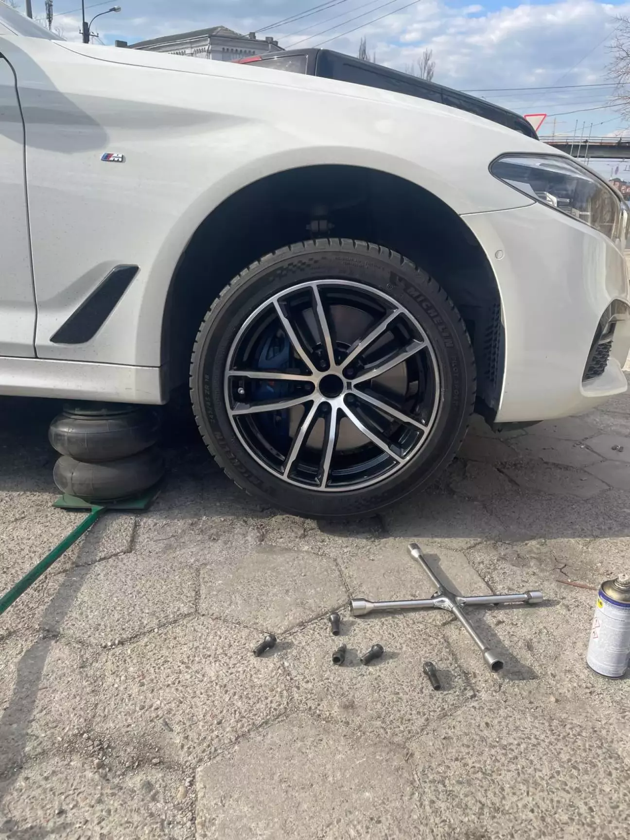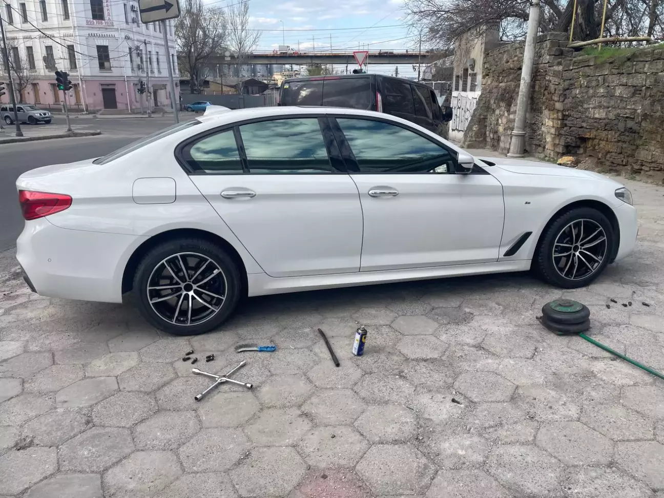 После того как забрал машину с СТО, заранее набрал Русику (шиномонтаж на Военном спуске — думаю, многие одесситы его знают). Договорились по времени, чтобы загнать машину: мои диски — в работу, и отдельно спасибо ему за то, что предложил подменные диски на время 🙌