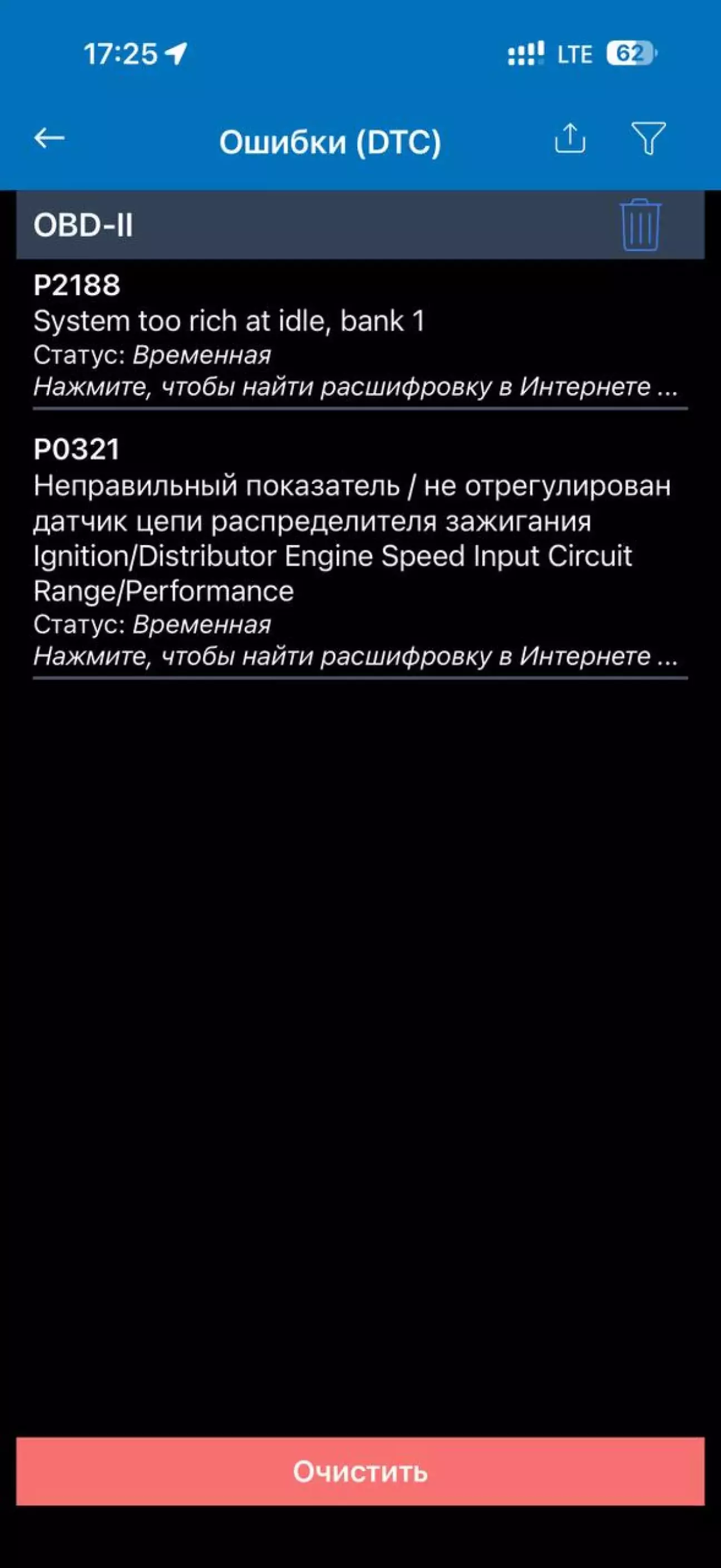 Потім я зробив ревізію проводки але тільки під жабо і намастив зовсім трохи герметиком трубу від турбіни в районі дроселя, зняв ущільнювач і під ним тонким шаром намастив. Після цього два дні було ідеально і от знов смикається. Одного разу після смикання зʼявився чек і ЕРС, прочитав і там було дві помилки Р2188 та Р0321.