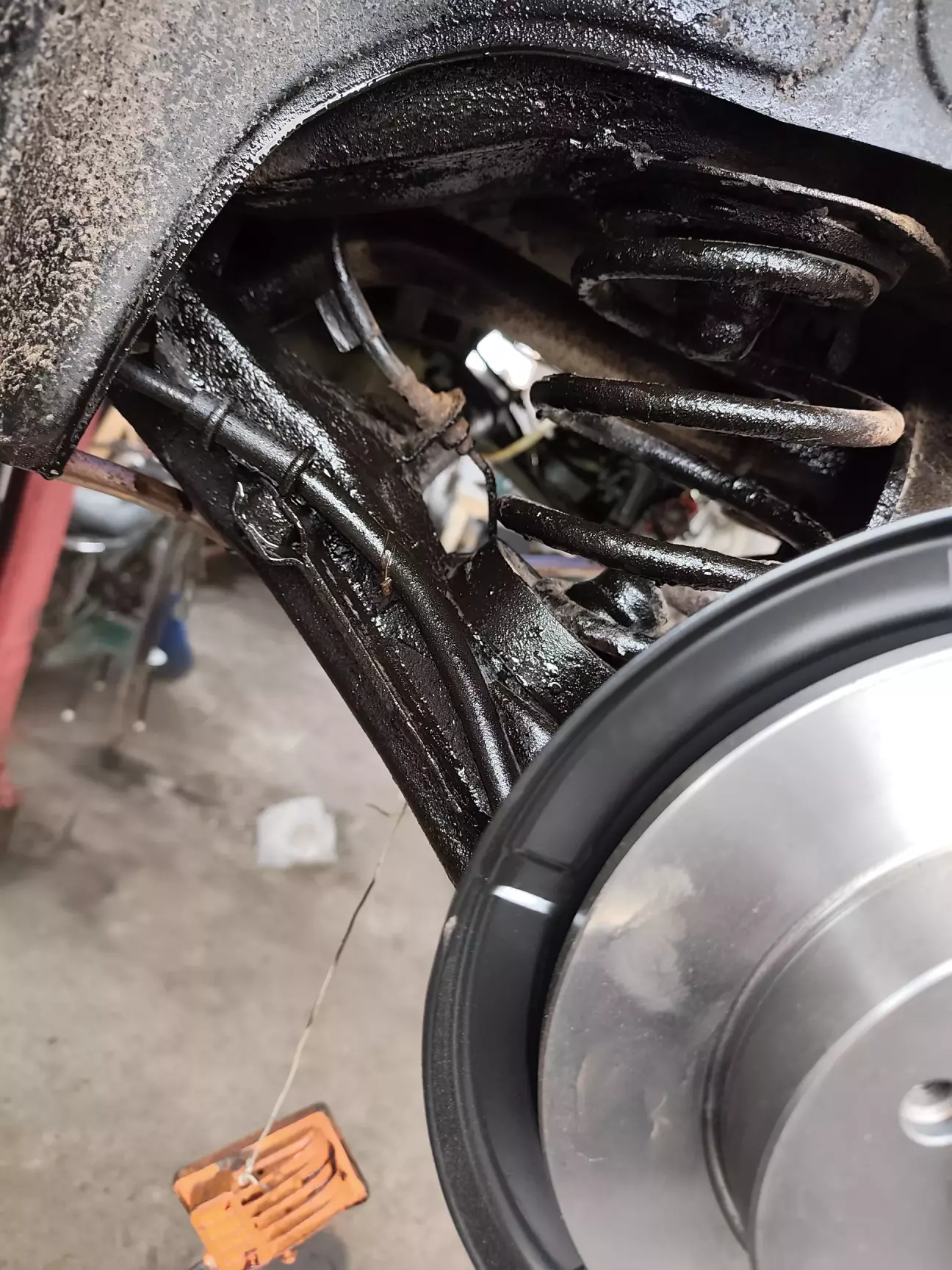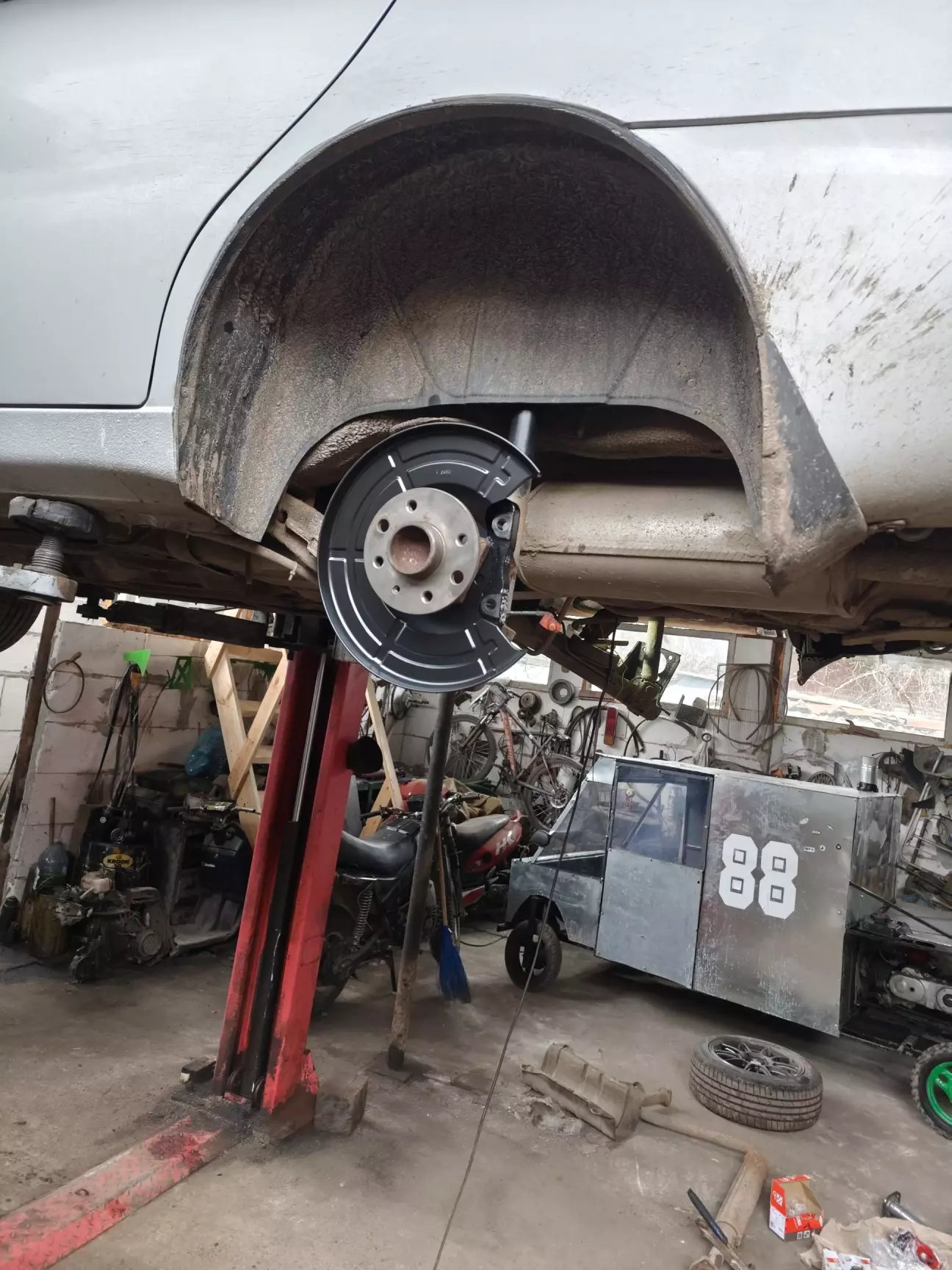 Тож тормоза на цей момент були зібрані, був знятий захисту двигуна, на якому було кілограмів 5 грязі))