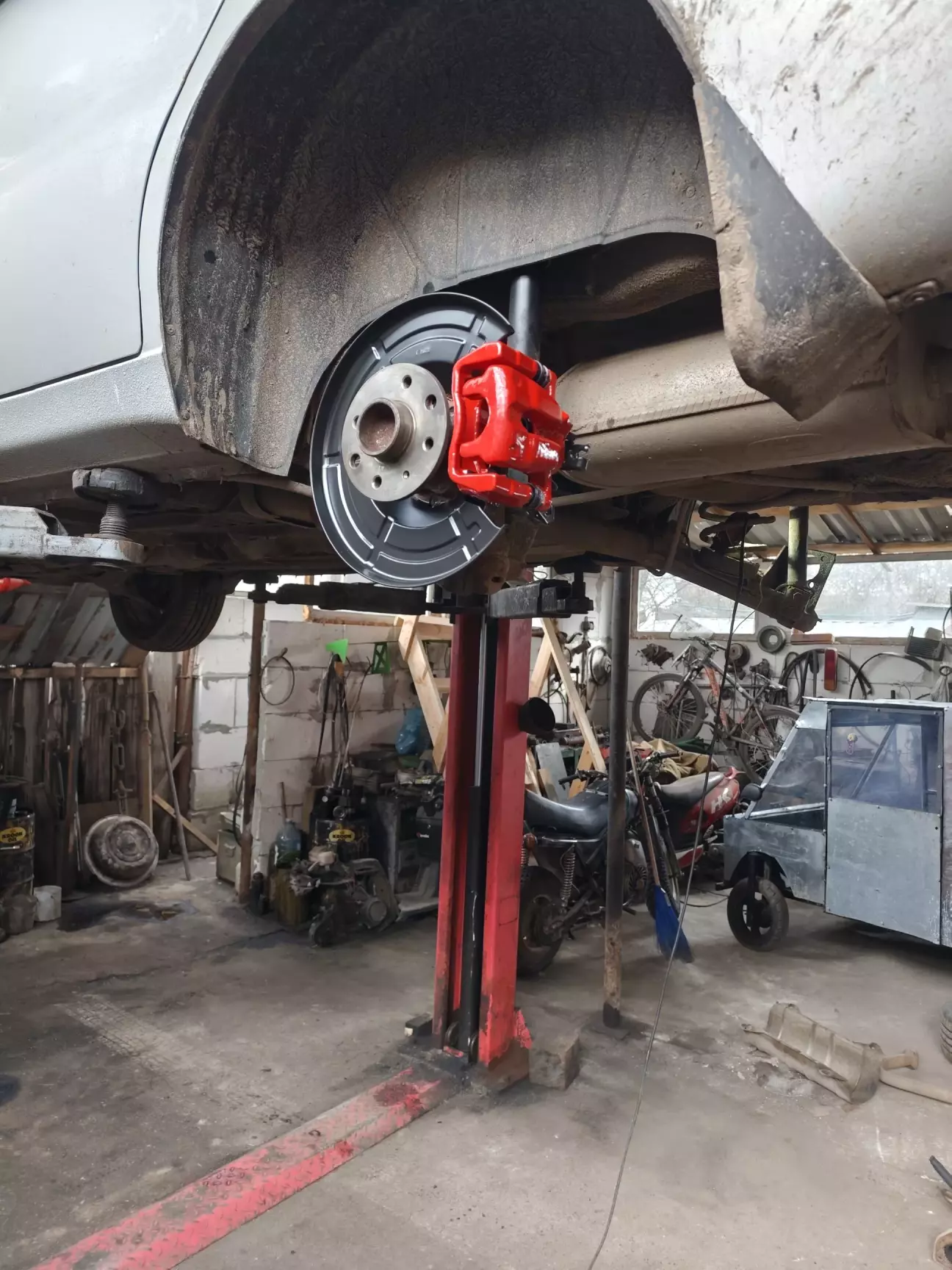 Зібрали ліву сторону..... Випили кави та зібрали праву, тормозні диски позаду 240мм