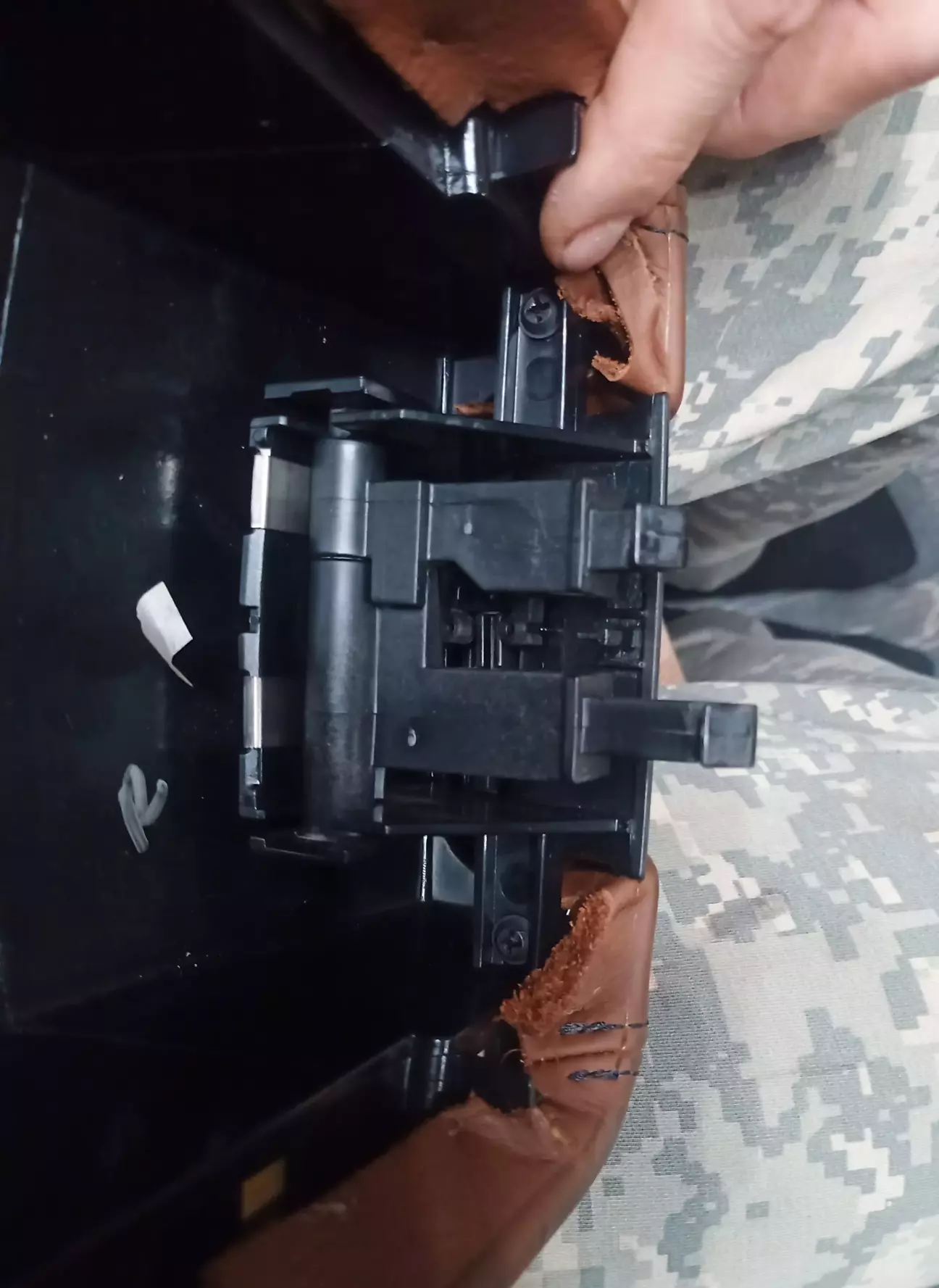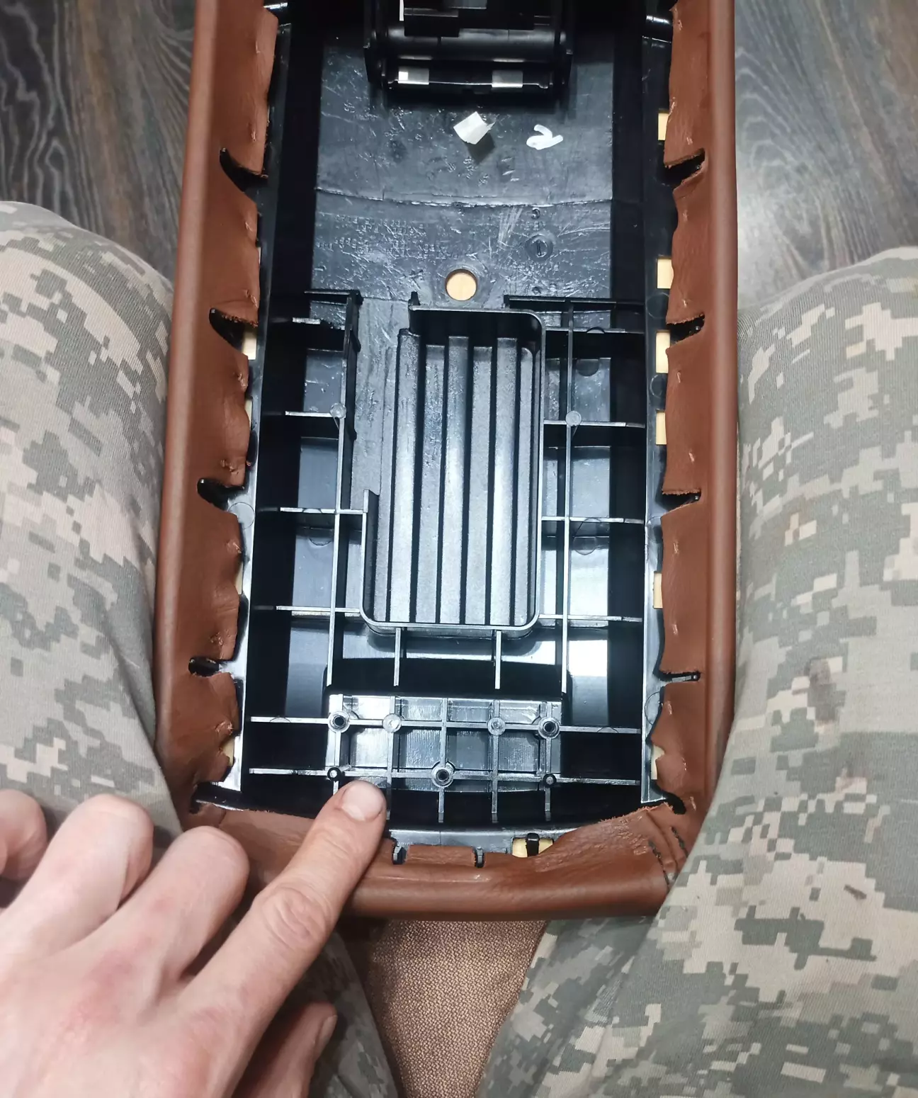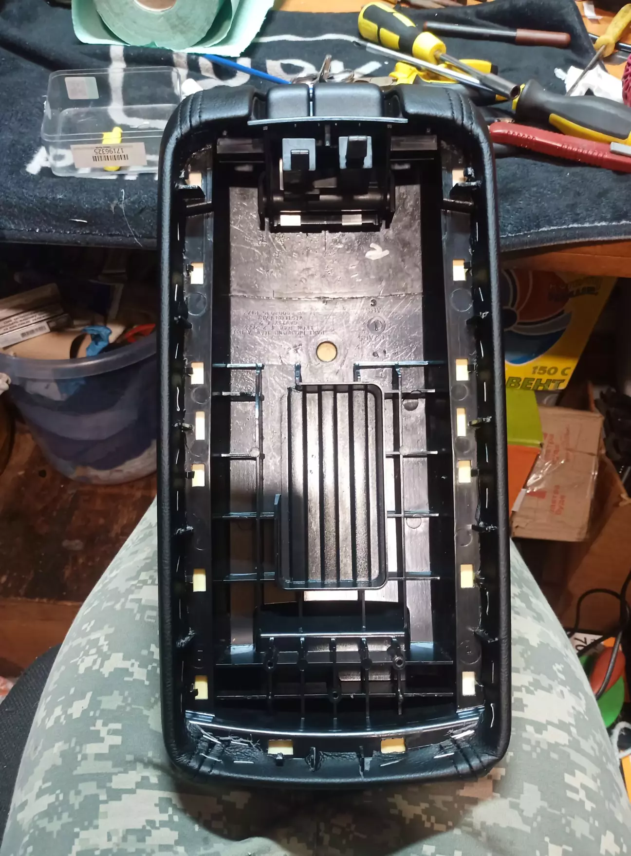 Знімається підлокотник досить просто. Відкриваєм, витягуєм на себе пластикову внутрішню деталь і відкручуєм три гвинти які тримають поворотний механізм. Дякуючи умовному Джону Сміту з США побачив як знімається внутрішня пластикова деталь підлокотника. А так би точно крючки відламав.