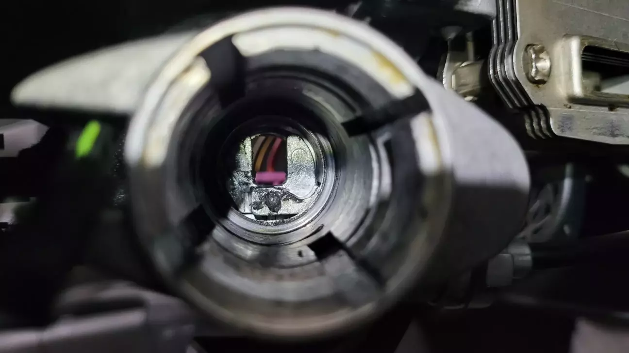 Розбираємо рульову колонку, знімаємо контакнту групу і бачимо обломаний штифт першого типу