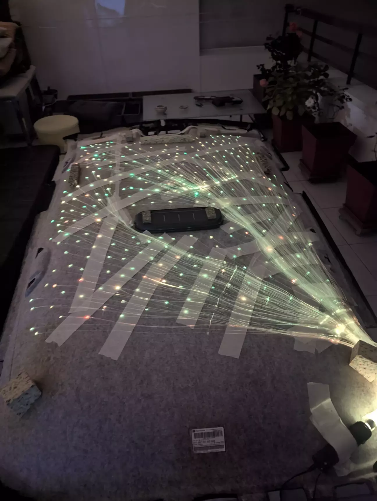 Коротше, мій Гольф вирішив зібрати всі вагівські біди, і стеля, що обвисла, не стала винятком. Оскільки за переклейку тканини (на вже знятій стелі) мені заспівали 250€, вирішив, що руки в мене ростуть з правильного місця, і зроблю все сам. Заодно вирішив докинути «зоряне небо», бо комплект на аліку (лазер + 300 волокон) коштує всього 50€. Спойлер: на Гольф 300 зірок це майже ідеал, можна взяти 350 щоб було шикарно.