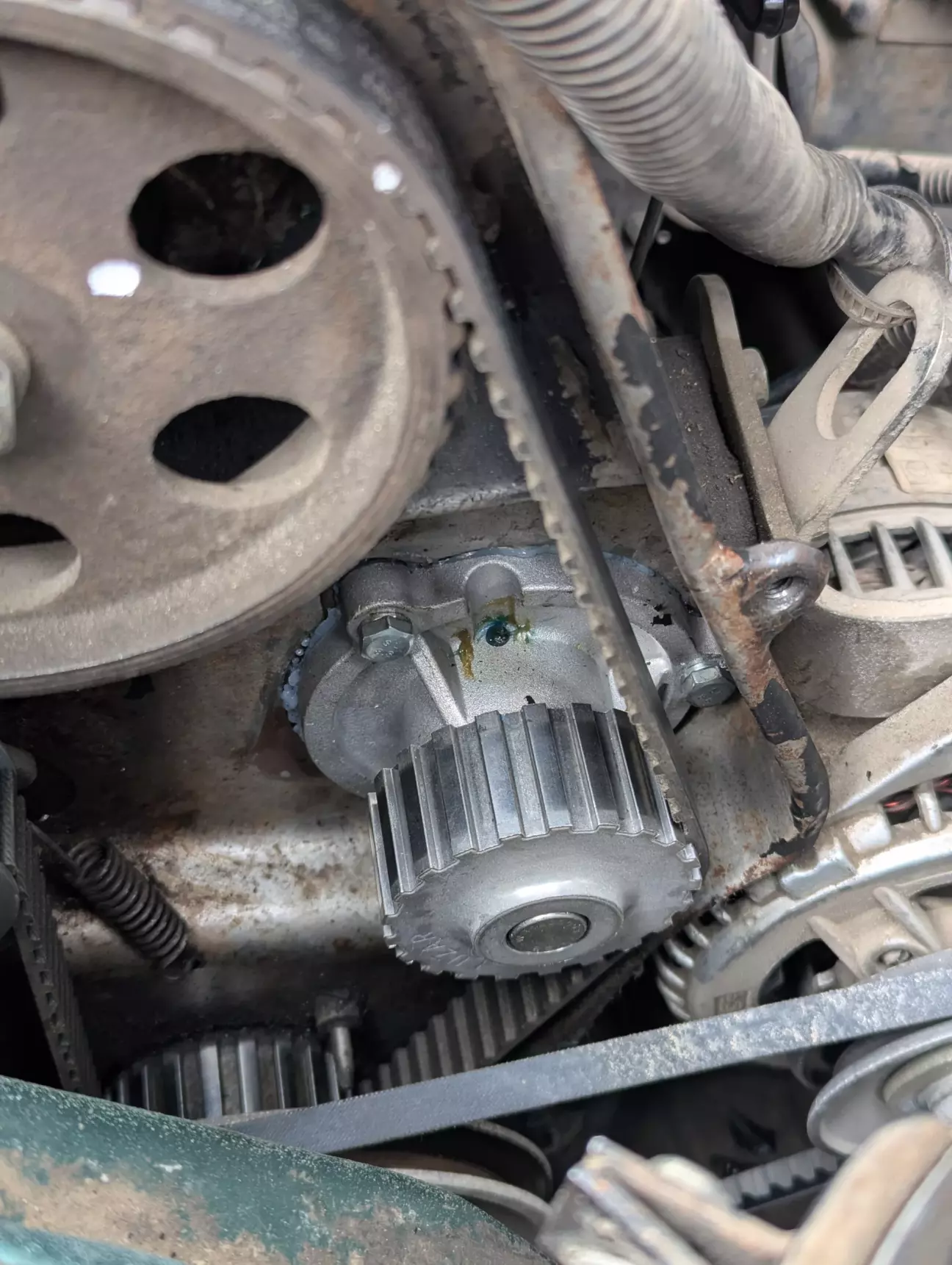 Читав, що на помпі є зливний отвір, коли манжета виходить з ладу, то щоб атифриз не потравляв до підшипника, але вона в мене не текла
