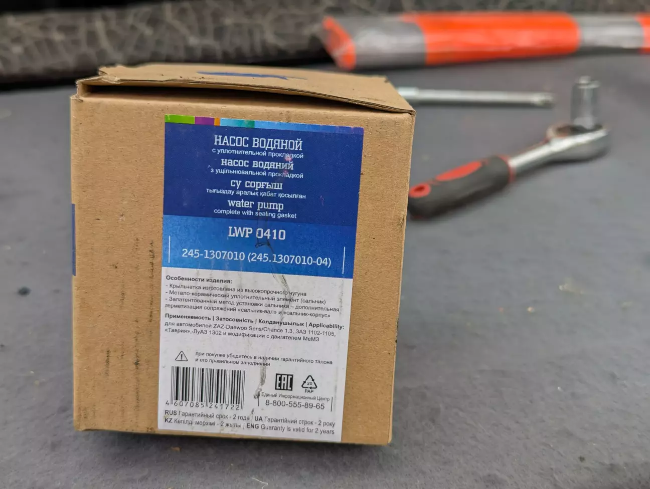 В суботу конче треба було поїхати на кладовище (відстань невелика) і я ще мотанувся туди назад з цим звуком, але під кінець дороги він ставав все частішим, тому я розумів, що хорошим це не закінчиться і більше ластівку не мучав, а почав шукати необхідні запчастини, а саме: натяжний ролик, помпу та ремінь ГРМ і протягом тижня планувати заміну цих запчастин. Помпу взяв фірми Лузар (певно це ще залишки виробництва, бо на деталях зп такої помпи нема, є на запчасті24) і продавець в магазині сказав, що це одна з найкращих помп на Таврію-Славуту. Натяжний ролик взяв фірми АТ