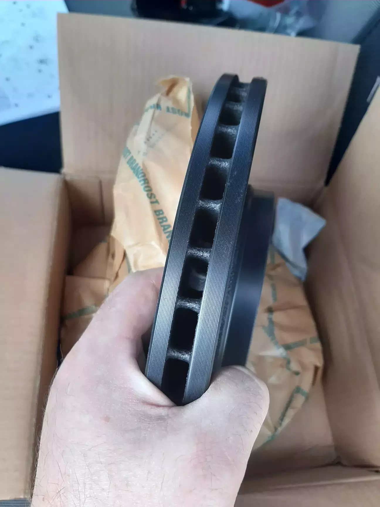 Доброго вечора!!! От і прийшов час замінити передні гальмівні диски, точніше прийшов той час давно, але якось завжли відкладав то діло, а це вже перед переходом на літні колеса вирішив і диски махнути, тому замовив, приїхали і сьогодні вирішив перевзутися і поміняти то діло. Нічого складного, все пройшло гладко і досить швидко, колодки не міняв, ще досить велика товщина накладок, тому махнув самі диски, поміняв, перевзув колеса, перевірив тиск і далі в путь. Диски взяв ТRW, подобається мені ця фірма, колодки використовую теж їхні, все чітко завжди без сторонніх шумів, з норм ефективністтю, єдиний нюанс, це трохи вони пилять, але мене то не бентежить, головне ефективність. Всім Миру!!!