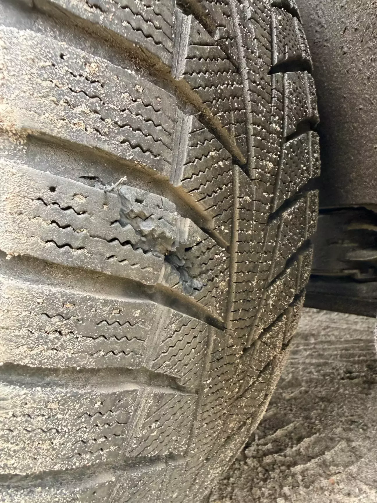 На шиномонтажі були в шоці і спитали, чи не на трубу якусь я наїхав. Але ні. Лише кромки довбаного фрезерування асфальту. Зачистили зсередини - Г-подібний розрив. Думаю, просто в невдалий момент нажав педаль газу, саме в той момент, коли колесо було на гострому виступі.