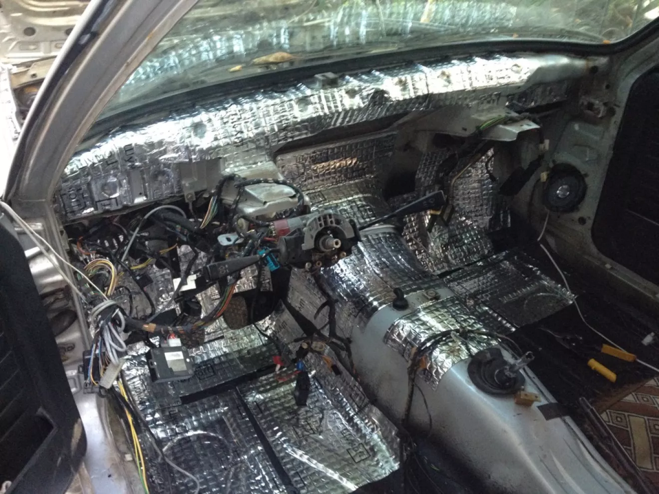 Вот наконец решился снять панель и сделать полную шумоизоляцию пола. Скинул панель потом снял печку и скинул ковер с стоковой шумоизоляцией. И тут меня ждал нежданчик) Ну кароче по фоткам все поймете) Зачистил все потом поехал мне заварили все дыры) Потом это все залили баранником. И сверху Шумофф м2 и Шумофф П4. Ну на все дно и за панелью ушло 30 листов 37*27 вибро-шумки. Пока про ефект сказать ничего не могу так как еще не собрал.Заодно заменил Лобовое стекло так как мое было треснутое.