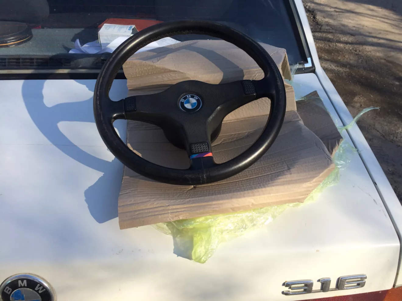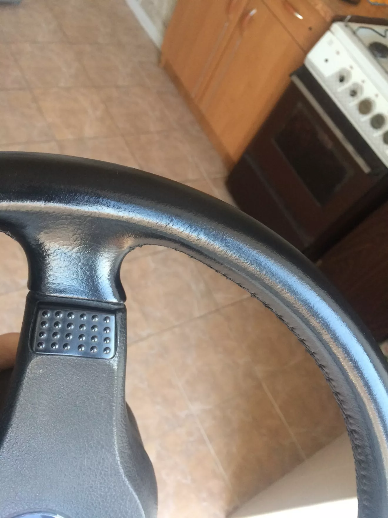 В прошлой записи я оставил фотку загадочной посылки. Так вот это долгожданный и желанный руль м тех 1 в состояние близко к идеалу. За что отдельное спасибо Андрею с Одессы! Жена хотела сделать толковый подарок на дн. Правда до дня рождения еще месяц, руль постоит на полочке к тому времени) Только его забрал заехал за краской для кожи и немного его отреставрировал. Покрыл три тонких слоя этой краски и дал просохнуть до утра. Краска просто отличная руки не прилипают, и сильно не блестит.