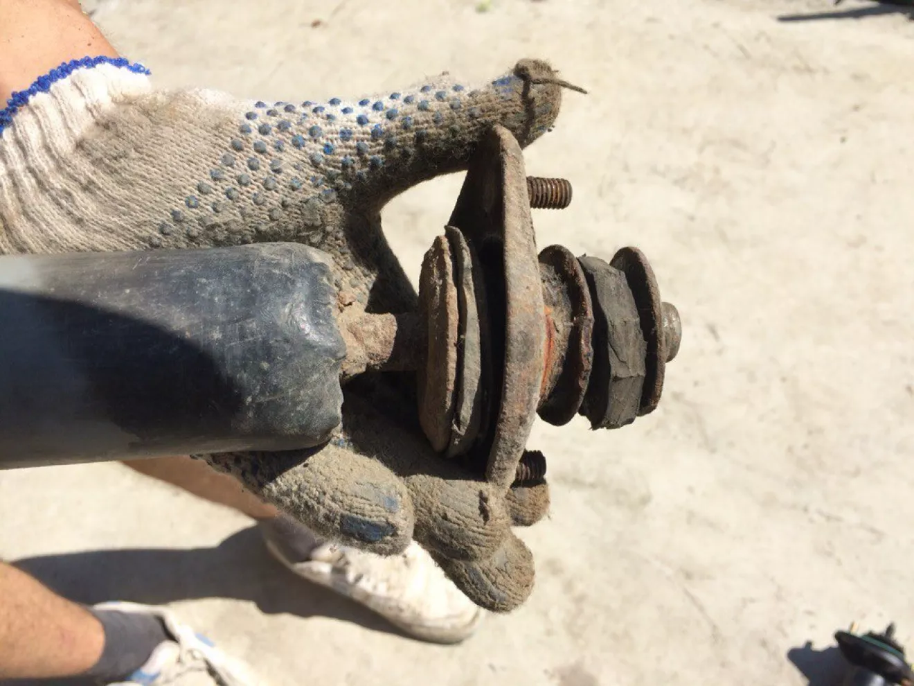 Когда покупал машину продавец сразу сказал что задним стойкам пипец) но я не думал что все так запущенно) Не понимаю людей которые покупают бмв и тулят туда солянку запчастей от ваз 2106. Поставил стойки KYB и новые опоры амортизаторов, ездить стало намного комфортней. Ну и походу дела установил распорку задних стаканов.