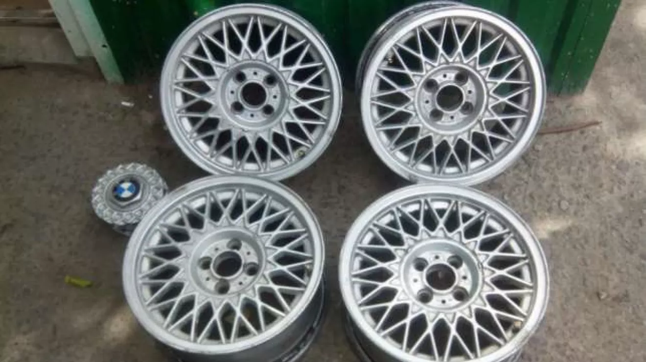 Очень долго искал подходящий вариант, буквально каждый день лазил по сайтам продаж, чтоб найти что то приличное и не дорогое) были хорошие варианты по 300 у е) но для меня ето задорого) И тут звонок на телефон от хорошего друга (кстати он купил у меня серую е30) есть диски только выставили на продажу с тремя крышками. Смотрю выставлено пол часа назад, созвонился в 16 00 и в 18 00 у меня уже был номер декларации. Щастя были полные штаны) Диски ровные в родной краске, две крышки от них одна от 5ти болтовых ббс. В общем ищу крышки от 5 стиля именно с 4 болтов. Параметры дисков 7j R15 4*100 et24. На машину пока не ставил, ищу резину подходящую.