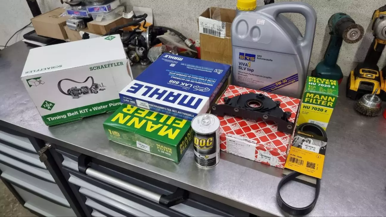 Прийшов час заміни оливи. Поспілкувавшись з минулим власником автівки було прийнято рішення про заміну ГРМ разом з помпою та переднім сальником. Взагалі регламентом закладена цифра в 60 тис км. Так як математика не важка, можна порахувати що наступна заміна мала б бути на 240 тисячах км. Але скупий платить двічі, тому вирішив завчасно все поміняти і зі спокійною душею кататись далі.