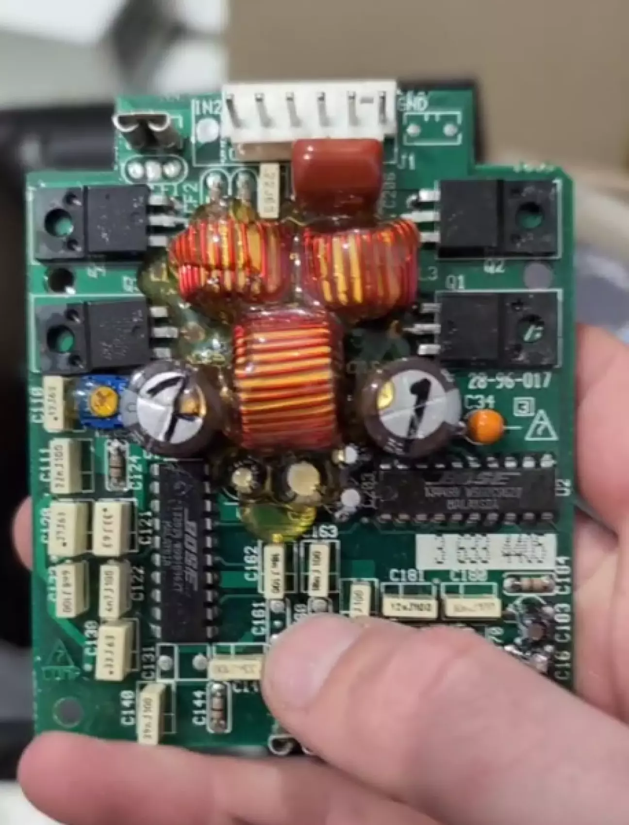 Сам підсилювач побудований на 4 транзисторах і 2 окремих мікросхемах з окремим маркуванням Bose. Швидше за все, все це працює в режимі АБ, по, навіть, чистому Б. Сильно я не заглиблювався, тому точно сказати не можу.