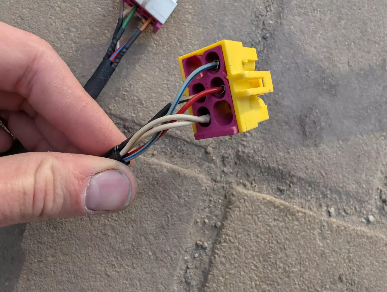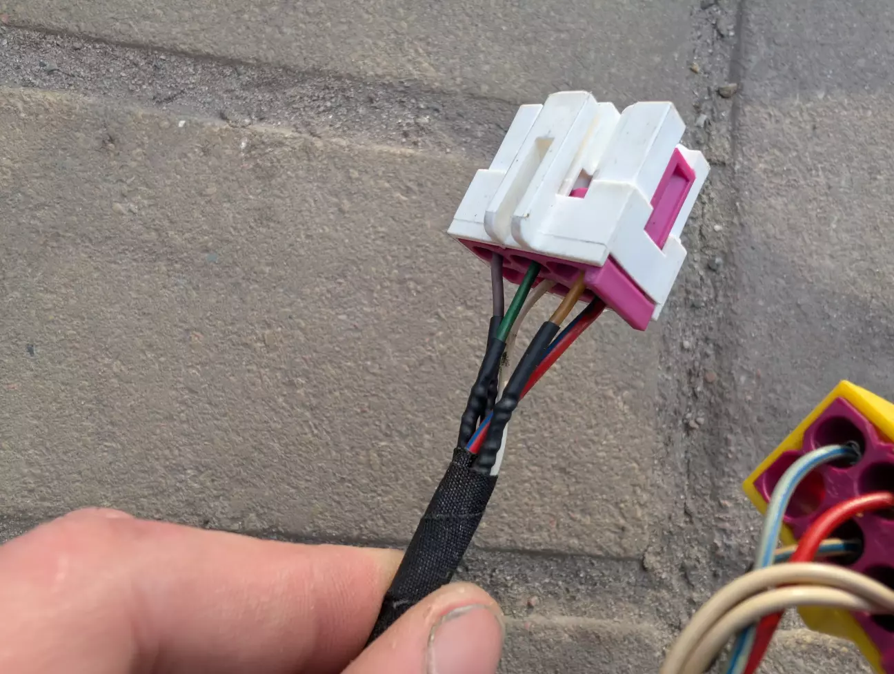 Другий роз’єм — це підключення БСК приборної панелі до магнітоли. З ним є нюанси. Штатно дана магнітола на ці авто не встановлювалась, і вона має інший протокол обміну даними, і для коректної її роботи потрібно встановлювати адаптер. Для початку я хочу спробувати, запрацює чи ні, і якщо ні, то вже потім виготовлю адаптер і опишу, як то зробити. Дроти для підключення екрана БСК підключаються до білої фішки, яка йде до комутаційної панелі 3, що знаходиться за блоком клімату.