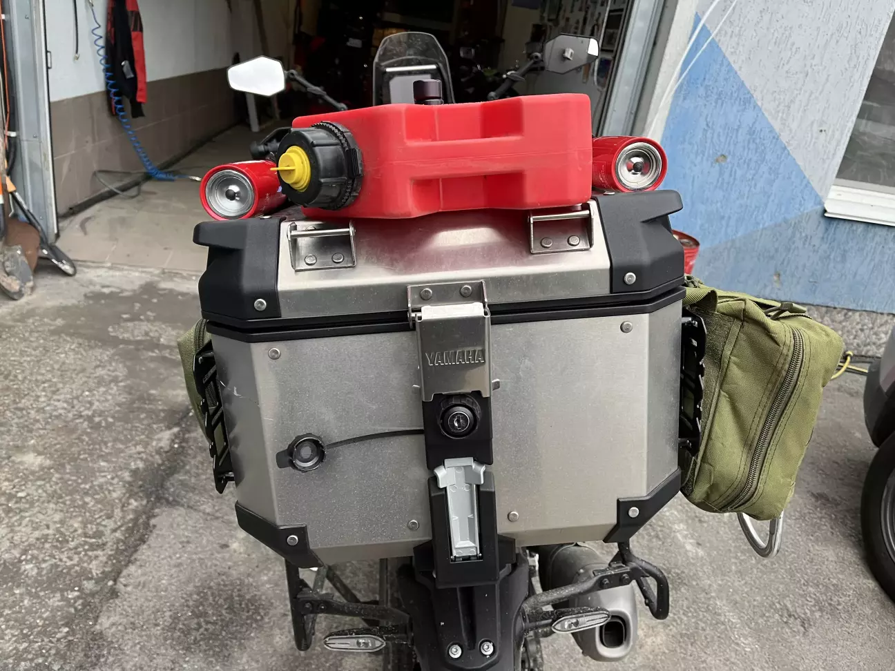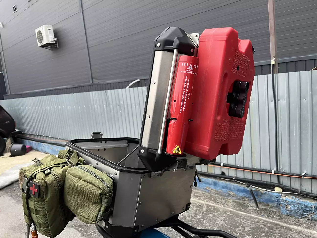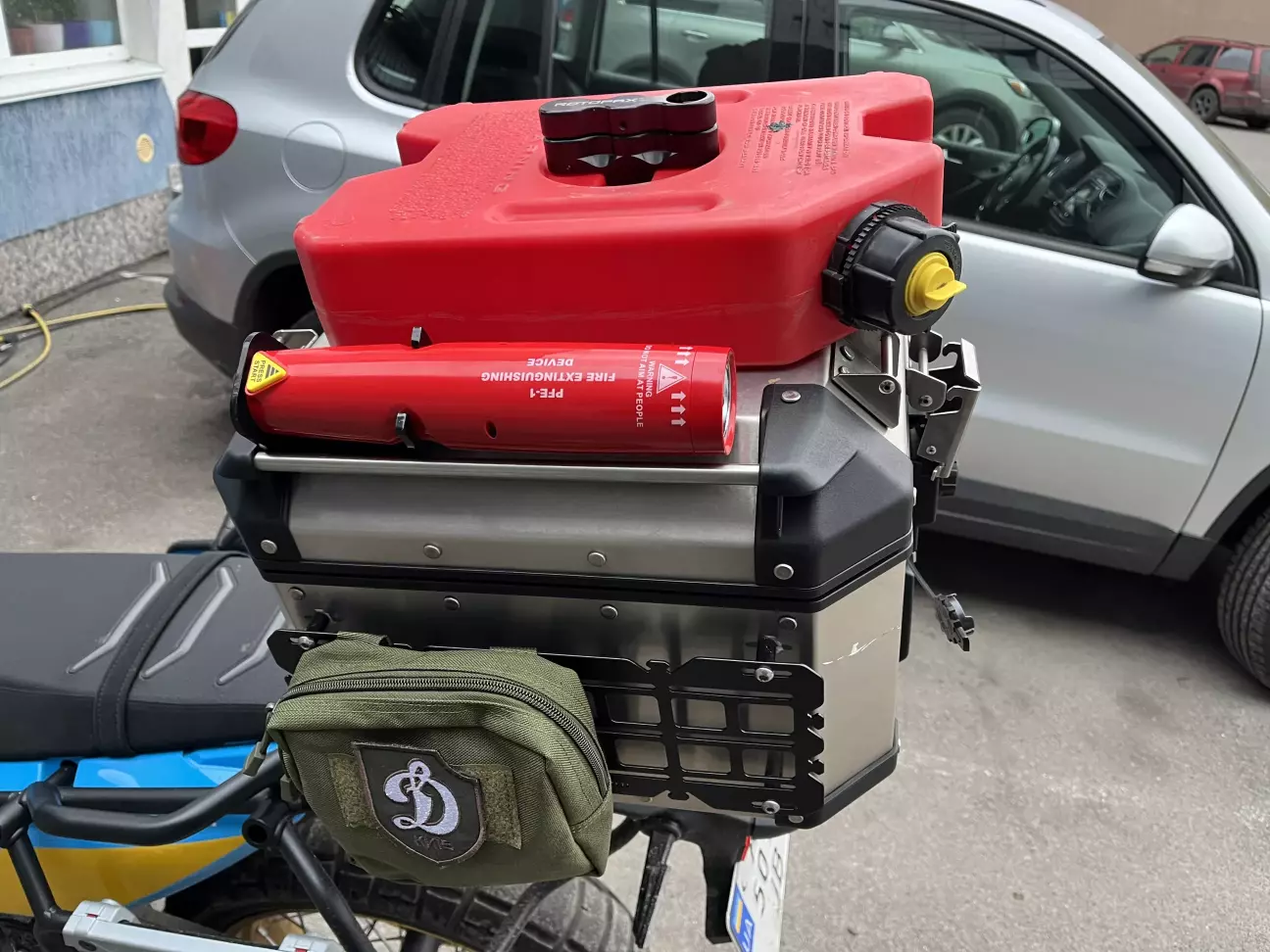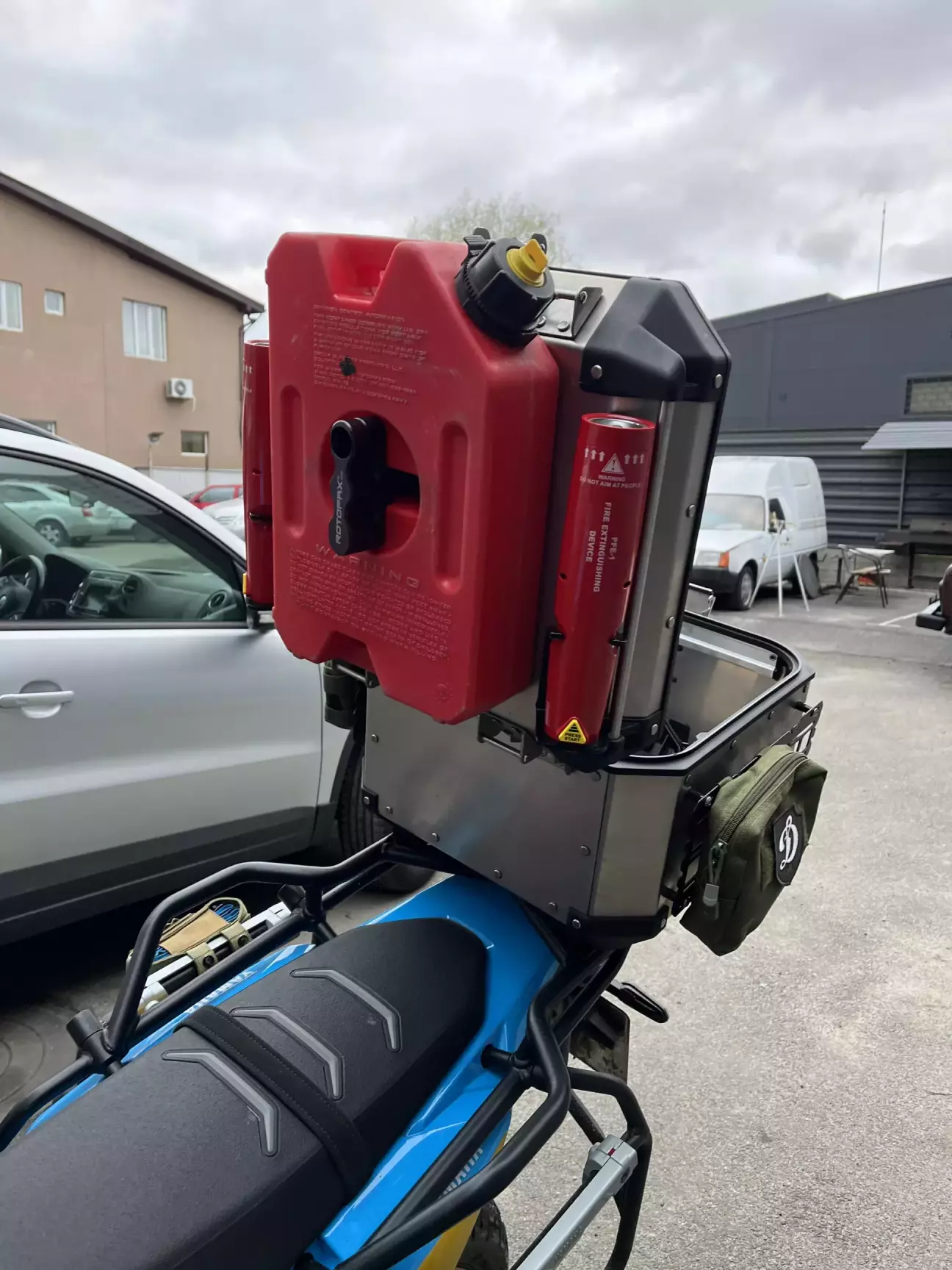Колись робив собі багажник симетричний, і розміщував каністру навпроти глушника.