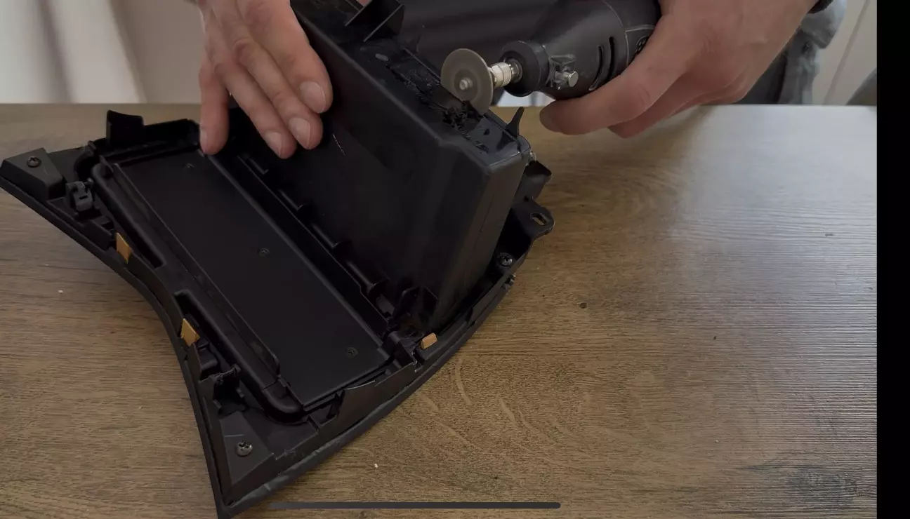 І вирішив вивести його в кишеньку під DVD. Для цього треба зробити в кишені «отвір»… так ніколи не робіть) мені можна, бо у мене цих панелей сильно більше, ніж одна) тож я, при необхідності, можу все повернути в сток.