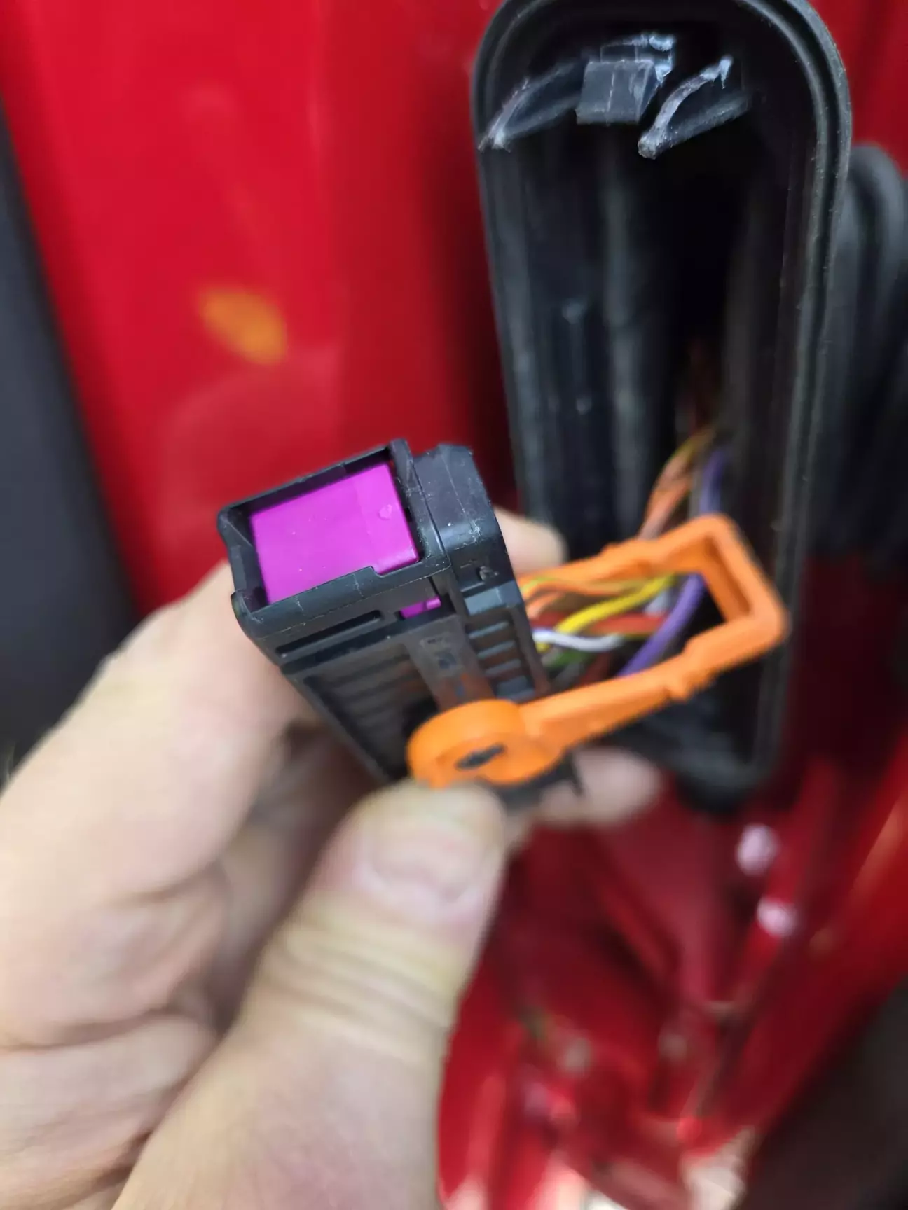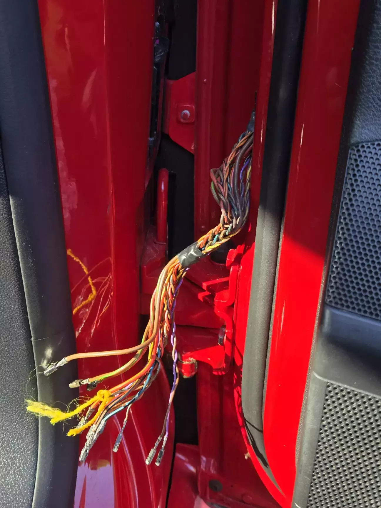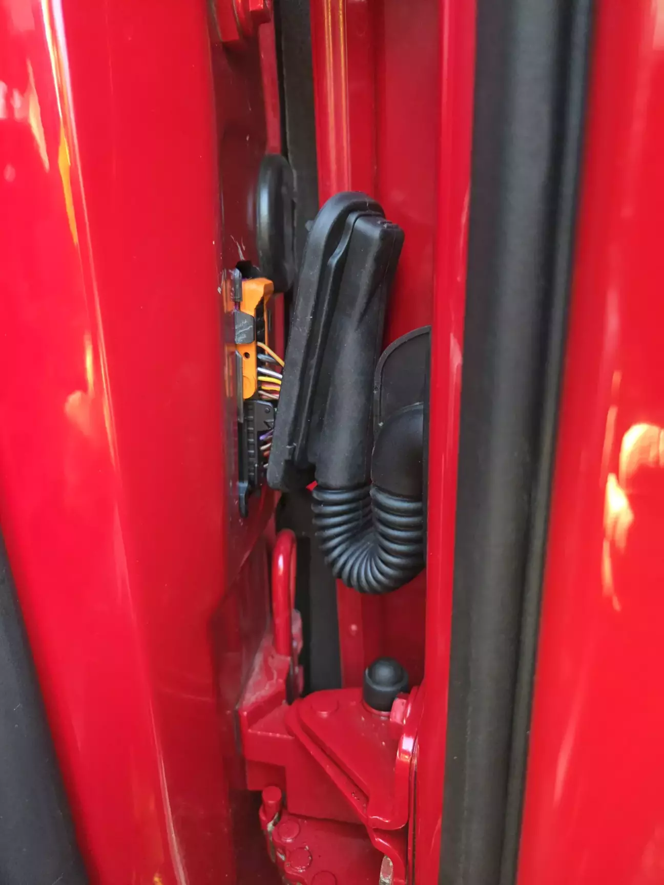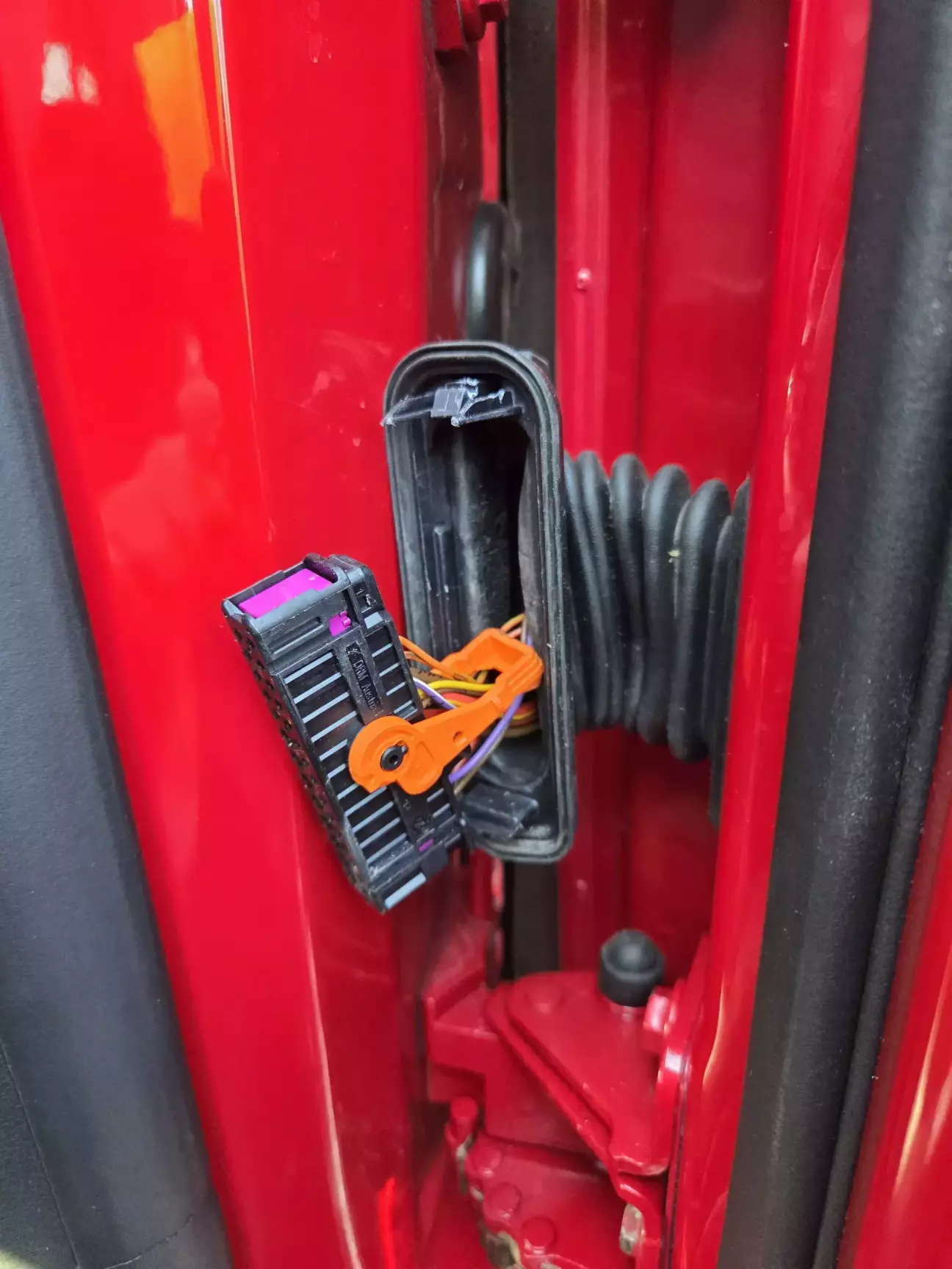 Оскільки малювалась права дверка, її знімали, нажаль гофра проводки не витримала демонтажу і її фіксатор зламався. Гофра не щільно прилягала до стійки кузова і туди могла просочуватись вода.