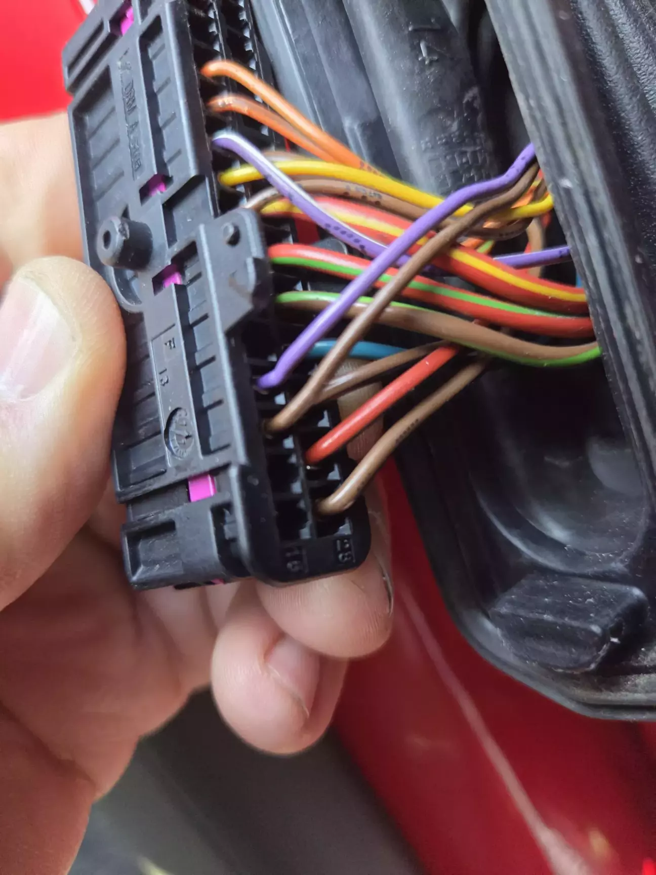 Знімаєм гофру від стійки кузова, тоді відключаємо акумулятор і відключаєм роз'єм від кузова.