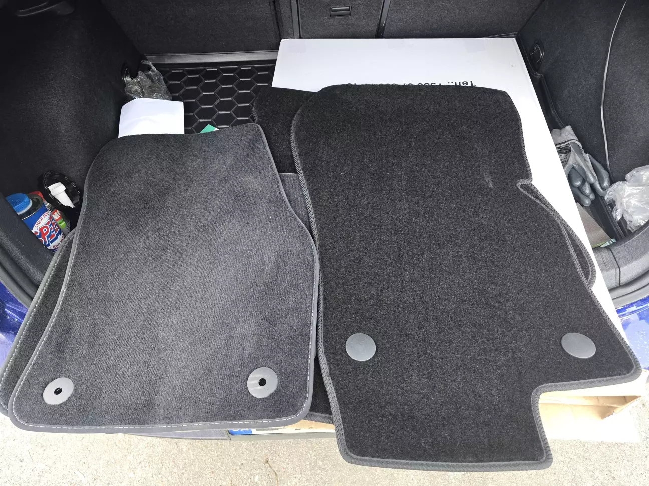 Коли купляв мазду, то коврики прийшлося докупляти окремо, бо чогось були відсутні в комплектації.. Тому підготовився і замовив коврики заздалегідь, але виявилось шо VW додає коврики.. як колеса і руль, що нормально. Але ж замовлення вже було зроблено і оплачено, тому замінив, а оригінальні поклав на полку.