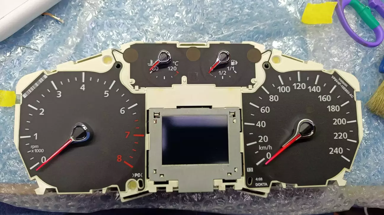 Помітив що час від часу панель жила своїм життям.Заводиш двигун ,стрілки не підінмаються,горить чек,якщо акуратно стукнути по панелі то все починало працювати.Тріщини в пайці конектора панелі це всім відома проблема.Розбираємо панель.