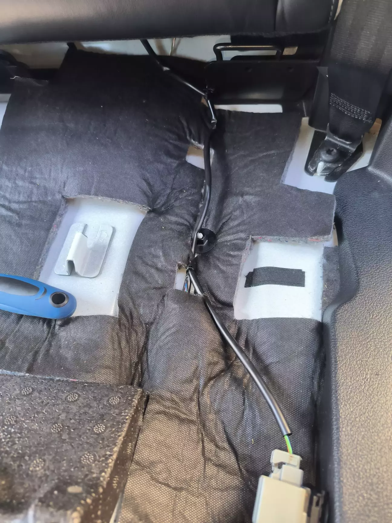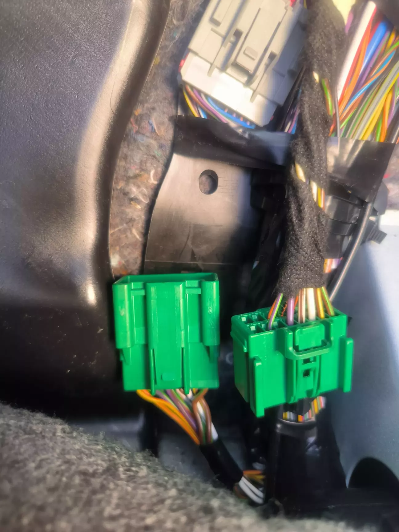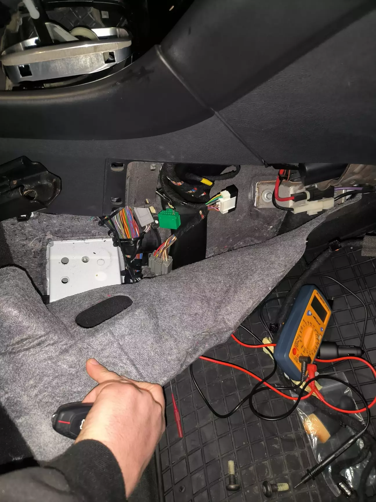 Розкрутив сидіння пасажира сняв килим ( там йде проводка і штекера з'єднання проводки) думав там десь не додали провода