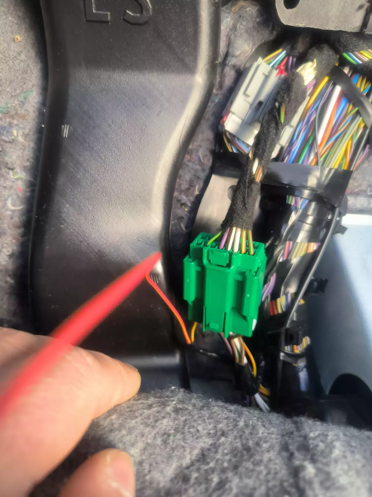 Написав @Mister_Incognito можливо щось він знає де де цей провід! Він скинув мені як йде по заводу вся проводка від заду до переду ( за що їму велике дякую) на наступний день відкручую ще сидіння водія відвожу в сторону килим і нарешті я знайшов його