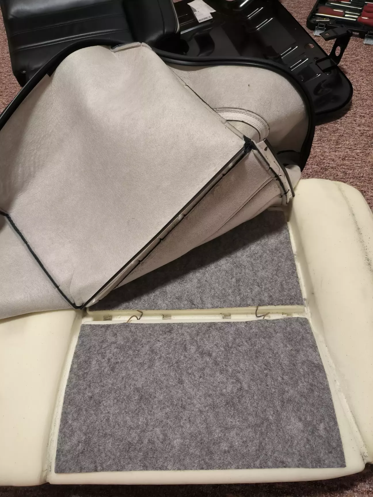 Далі потрібно сняти задні сидіння та розібрати і приклеїти мати ( скажу вам що потрібно багато терпіння щоб розігнути металічні кольца та назад потім все скласти!) ( не раджу садити на пластикові стяжки вони з часом рвуться)